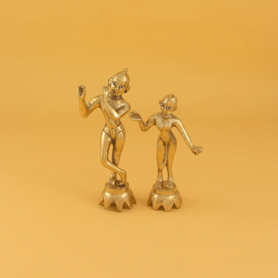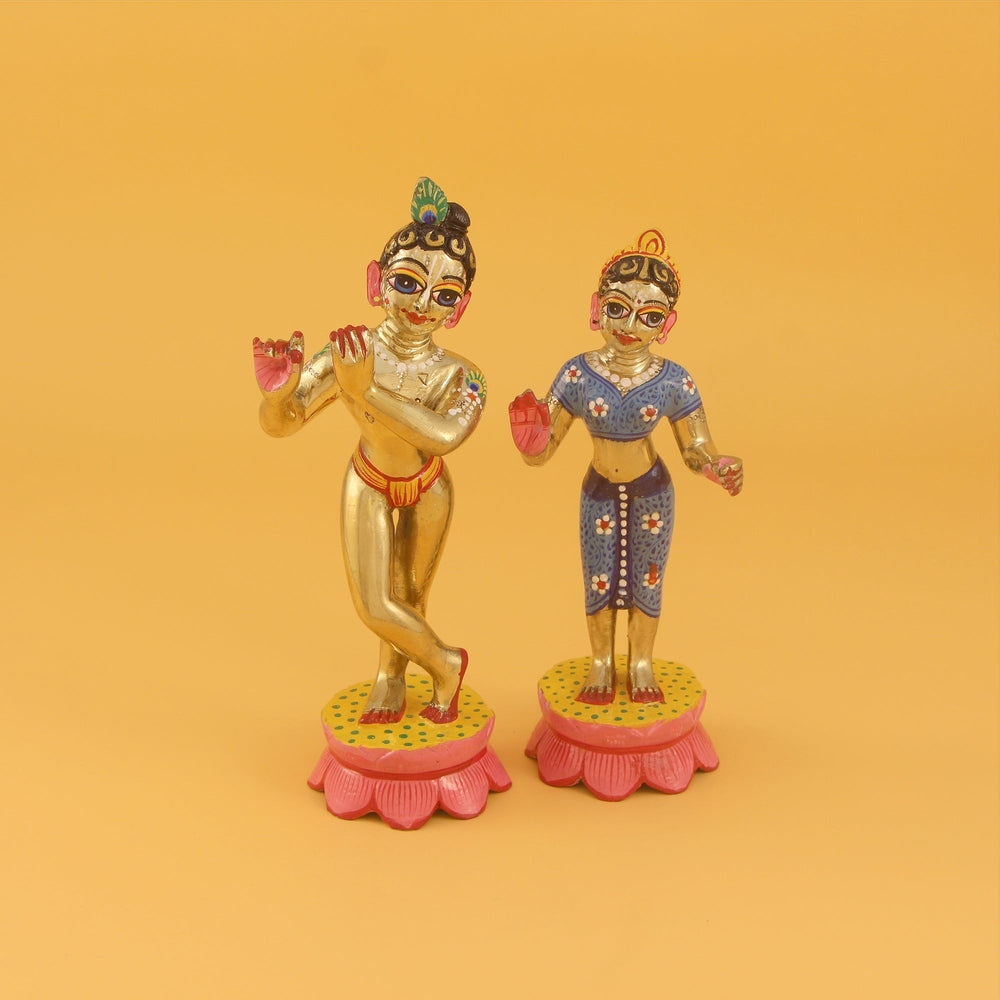 Ashtadhatu Radha Krishna Yugal Jodi - Golden Finish Plain Idols