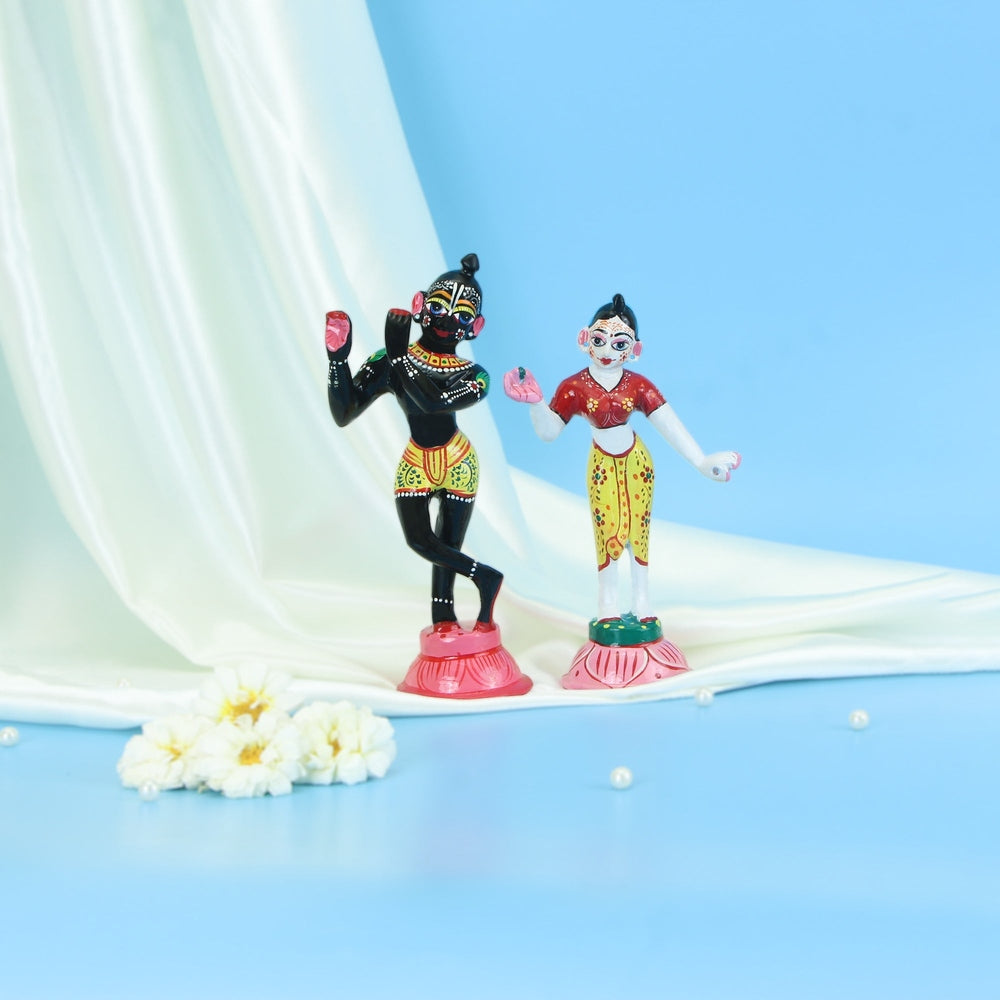 Ashtadhatu Radha Krishna Yugal Jodi Idol - Hand Painted Beautiful Kanha Ji with Fully Makeup Kishori Ji