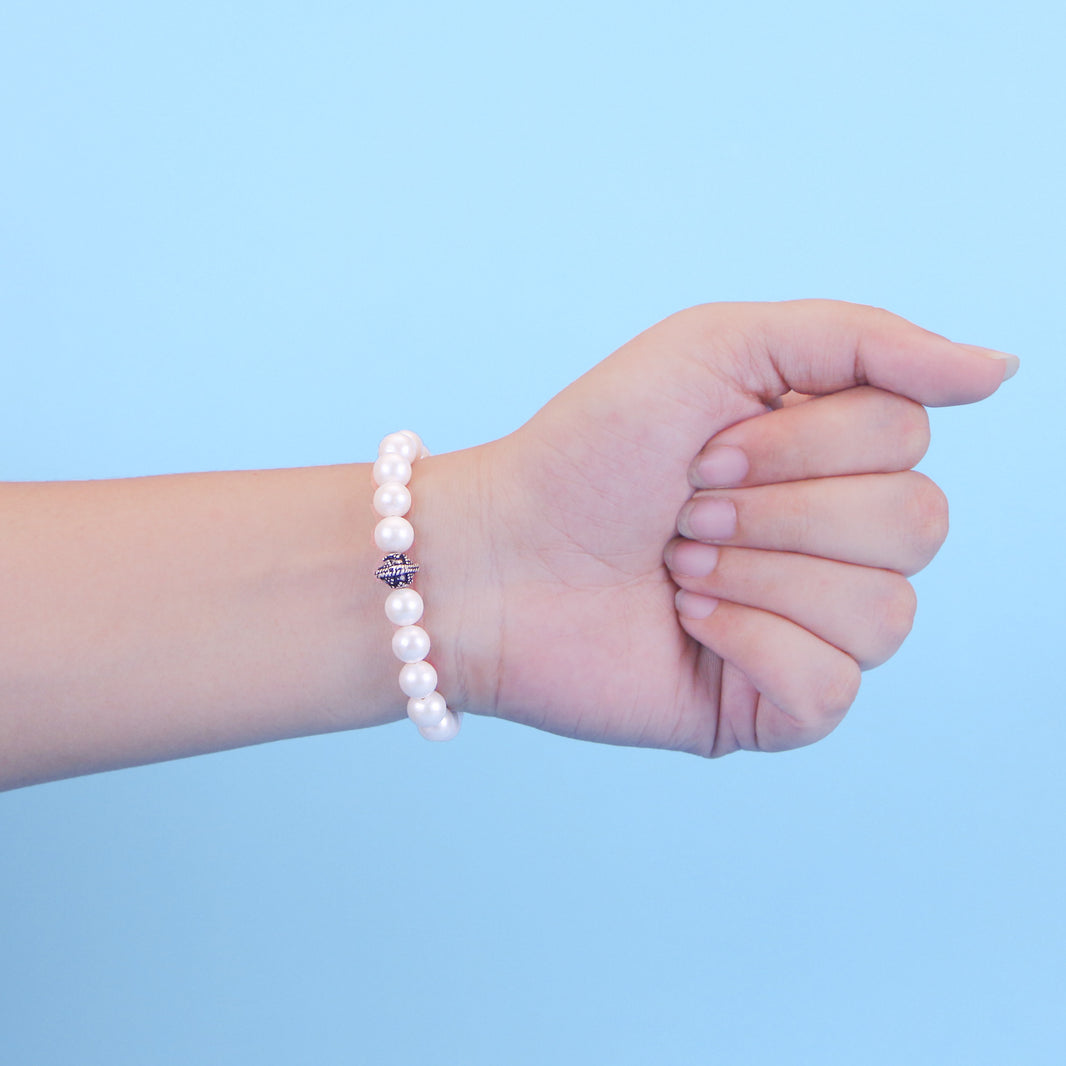 Rudraksha and White Pearl Bracelet – With Silver Capping