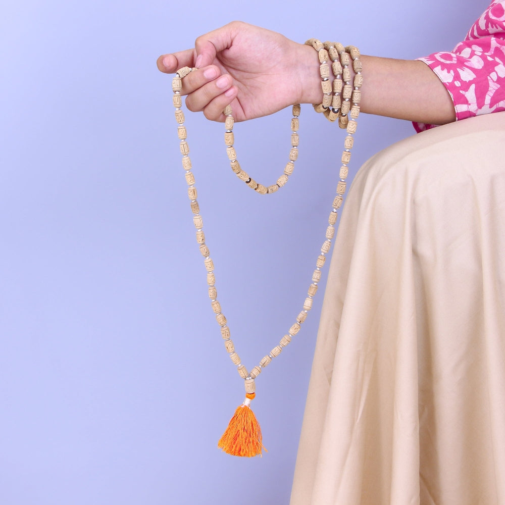 Tulsi Kanthi Mala - Carved Round Beads, Premium Quality with Natural Finish