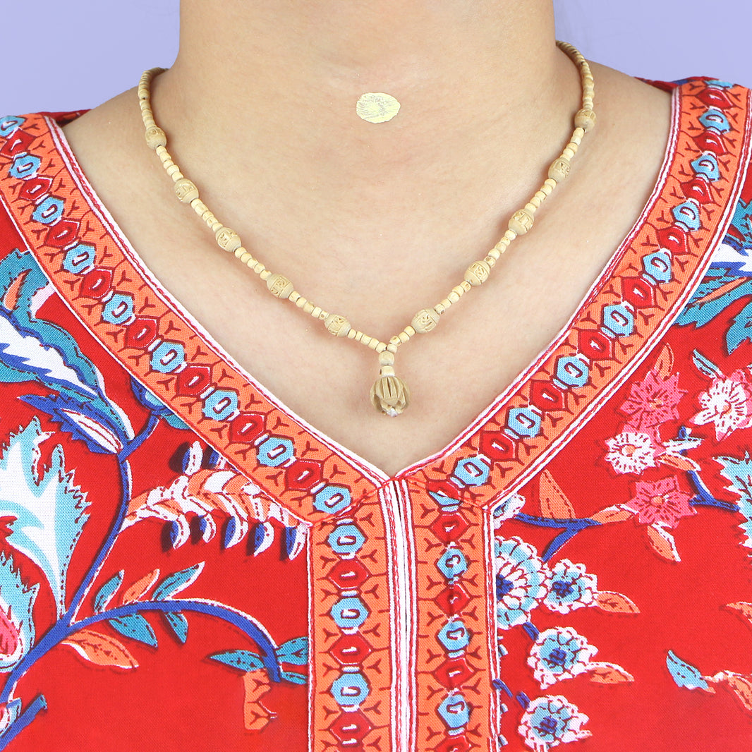 Handcrafted Tulsi Kanthi Mala - Carved Beads, Mathura