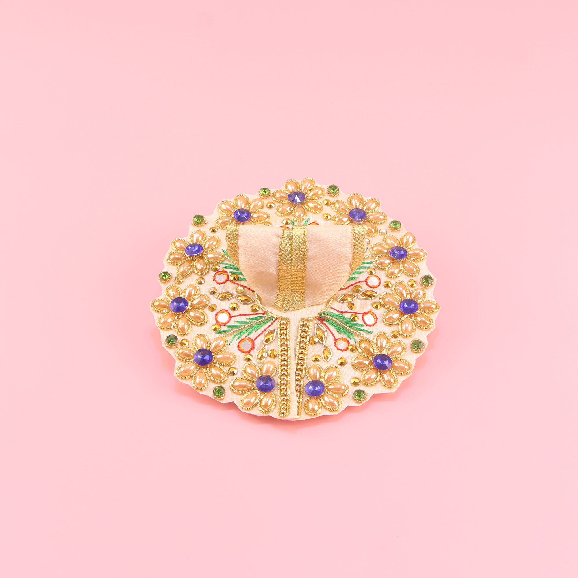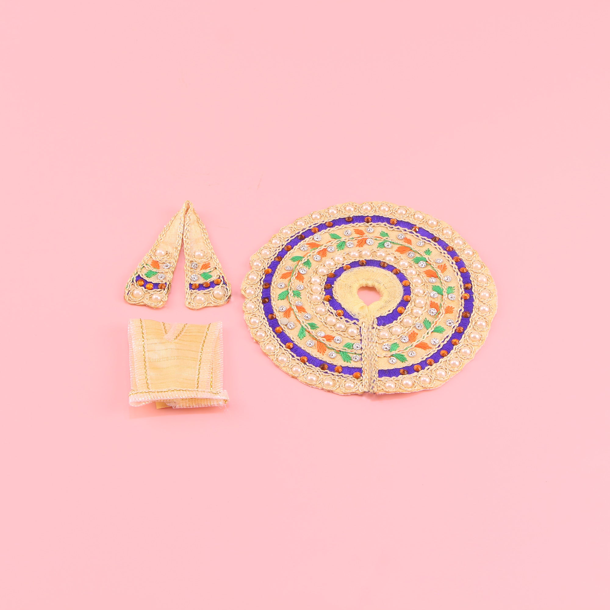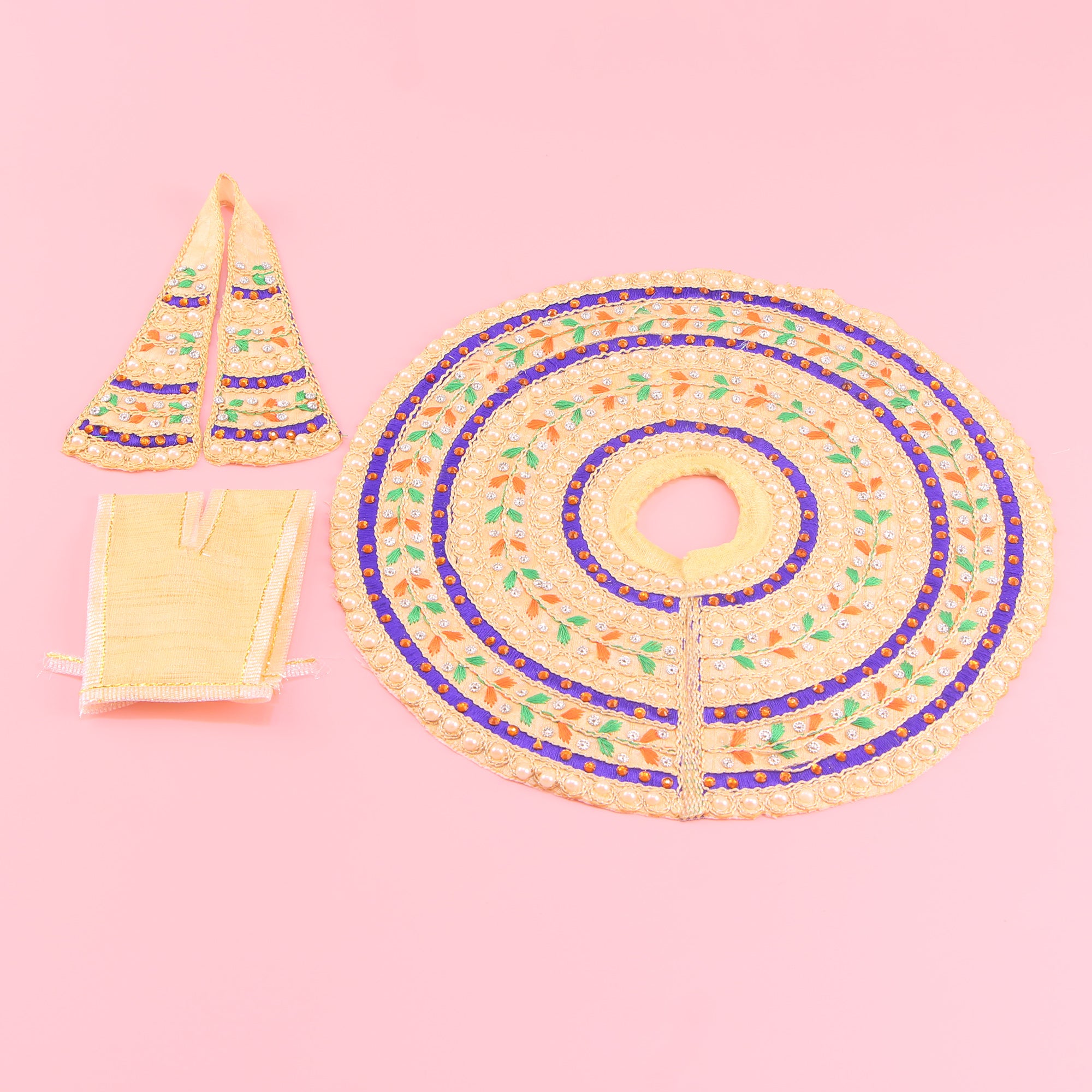 Laddu Gopal Cream Dress - Handcrafted Colourful Thread Work Poshak with Patka