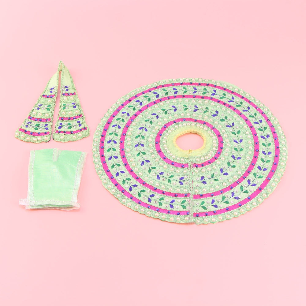 Laddu Gopal Green Dress - Handcrafted Thread Work with Patka