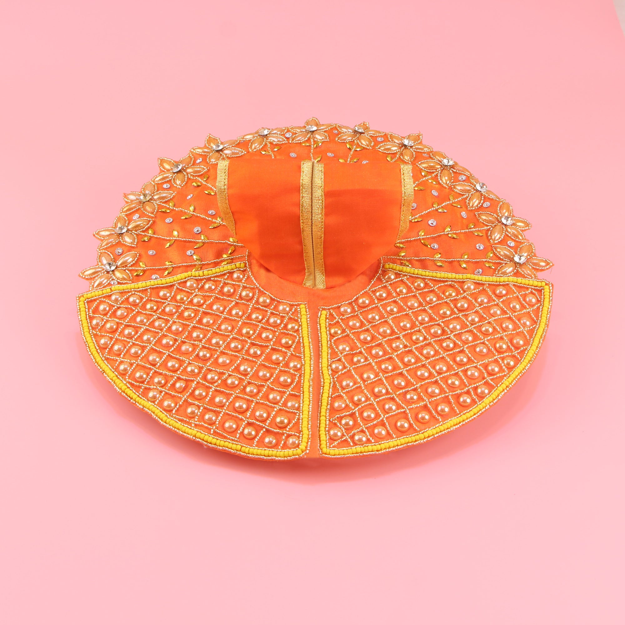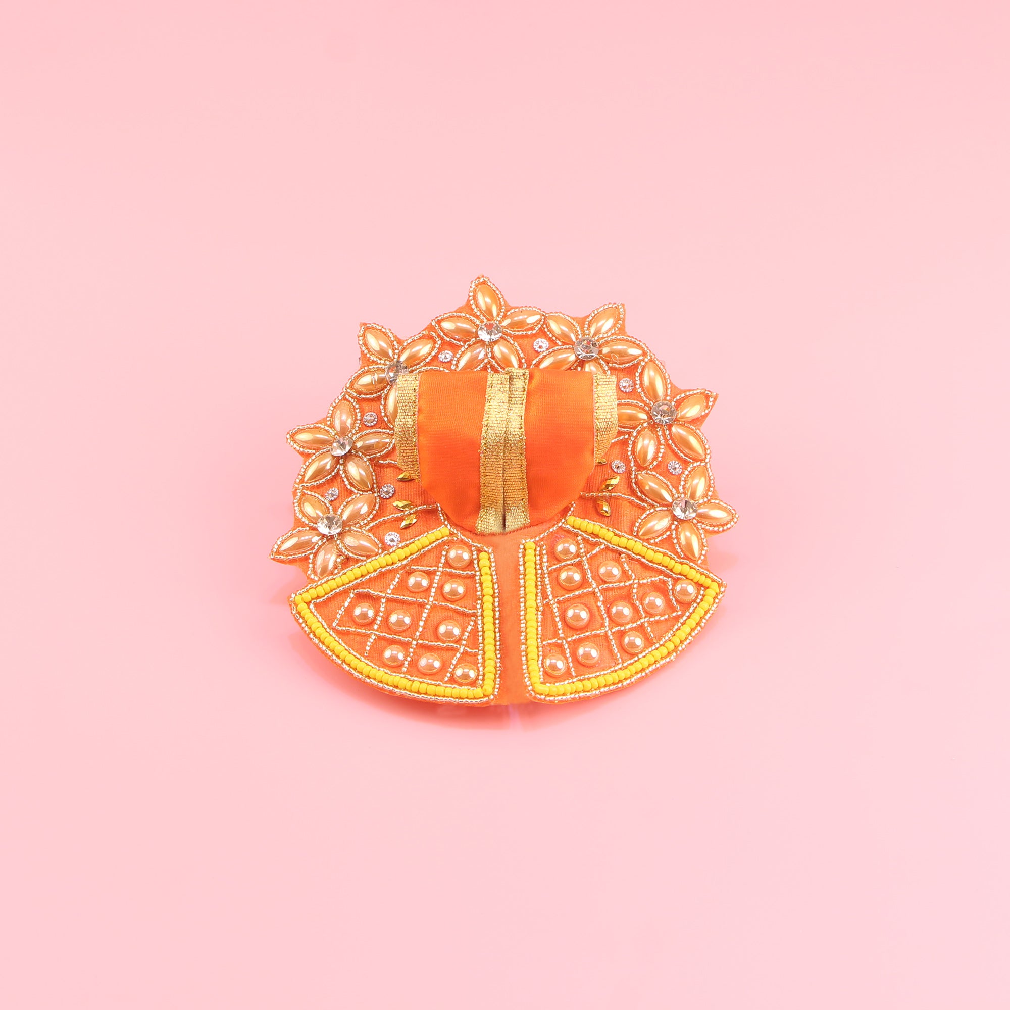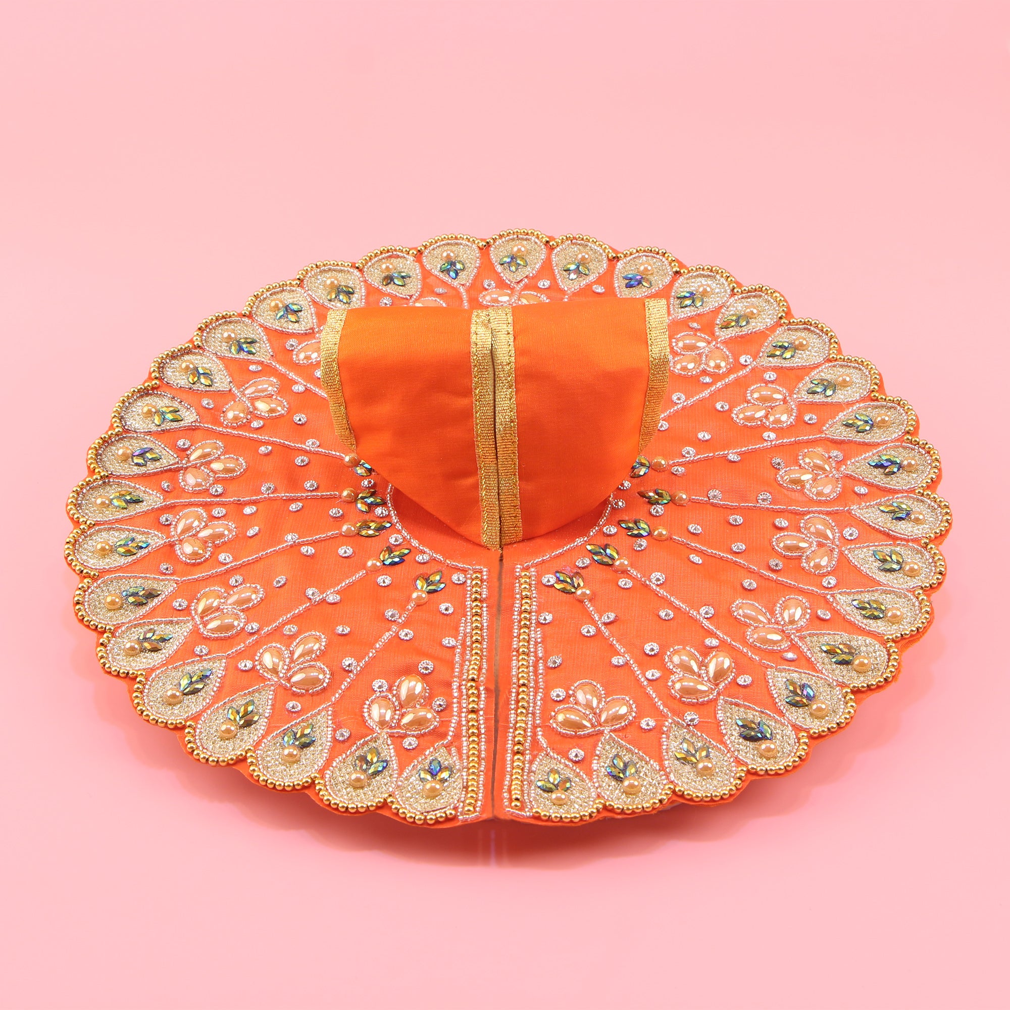 Laddu Gopal Orange Dress - Handcrafted, Golden Stone Floral Design