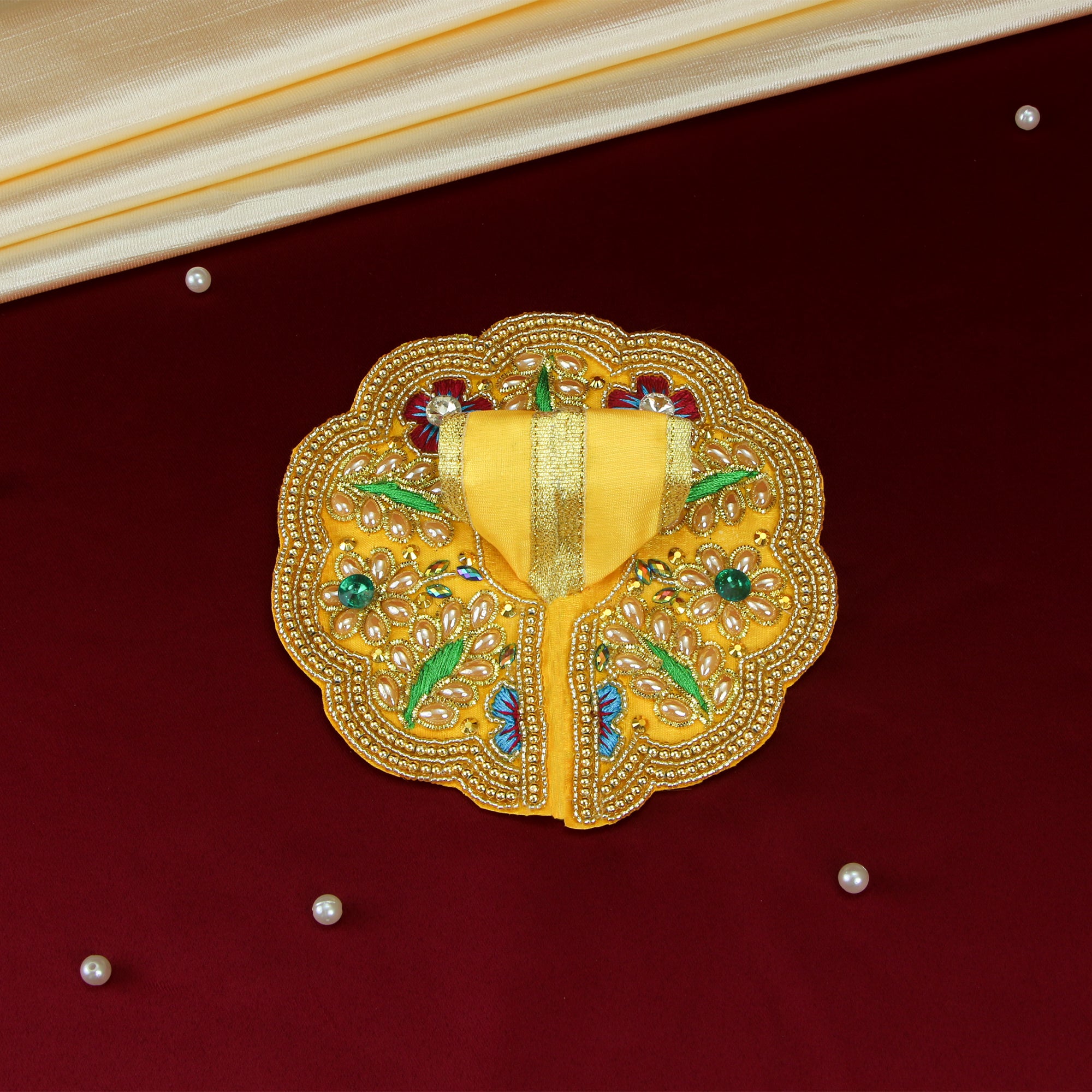 Laddu Gopal Yellow Dress - Handcrafted, Floral Work Peacock Design