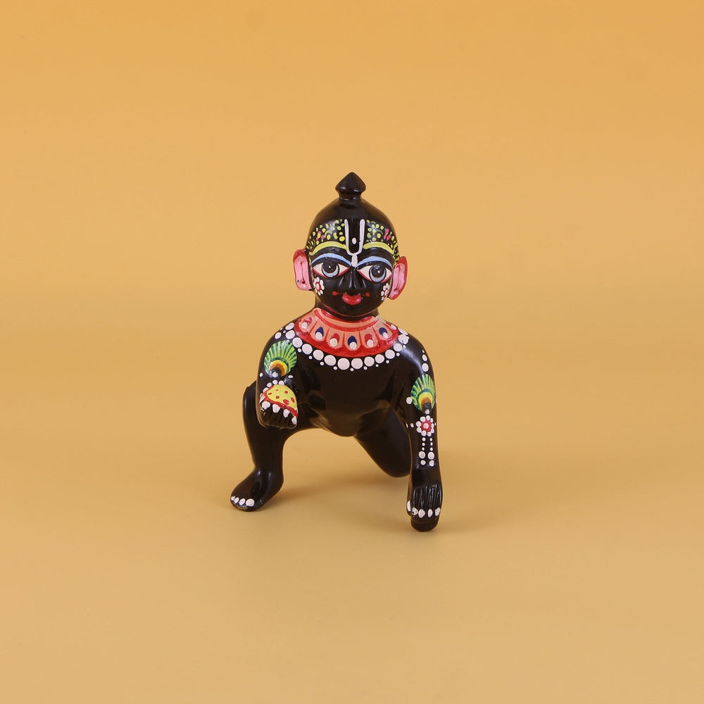 Laddu Gopal Brass Idol - Hand Painted Unique Design Black Colour Laddoo Gopal
