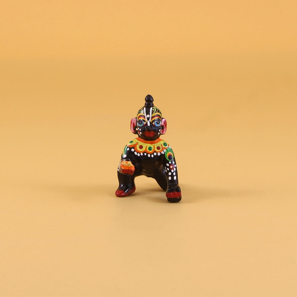 Black Laddu Gopal Brass Idol - Hand Painted Colourful Chote (Small) Kanha Ji