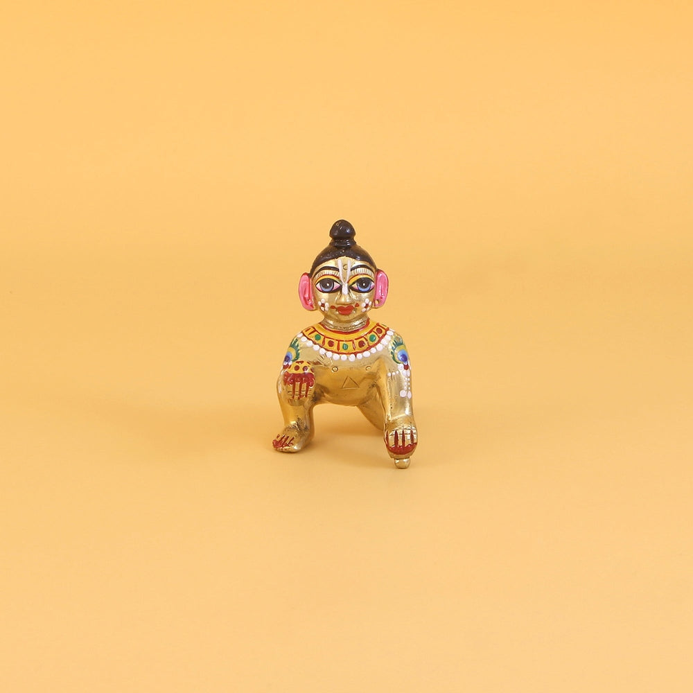 Laddu Gopal Ashtadhatu Idol - Colourful Hand Painted Chote (Small) Kanha Ji, Mathura