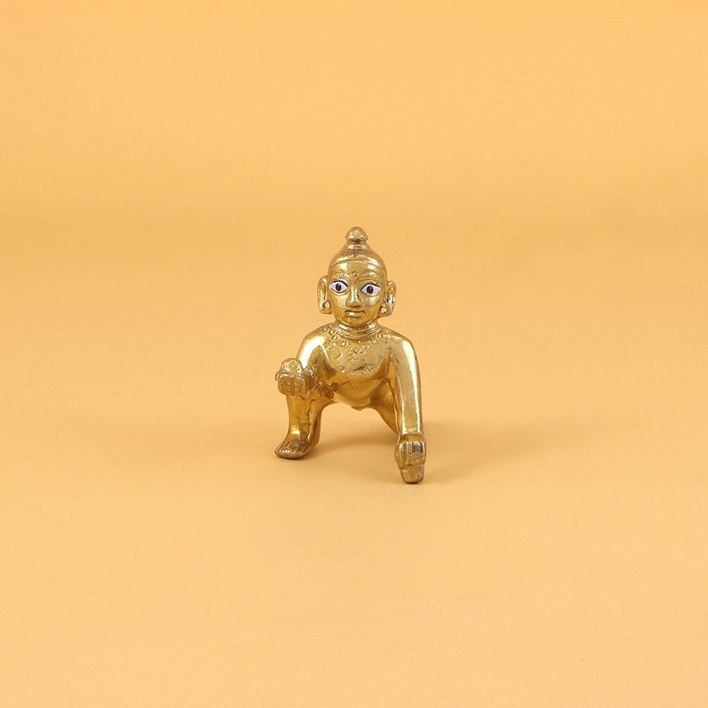 Laddu Gopal Ashtadhatu Idol - Golden Finish Plain Deity with Big Eyes