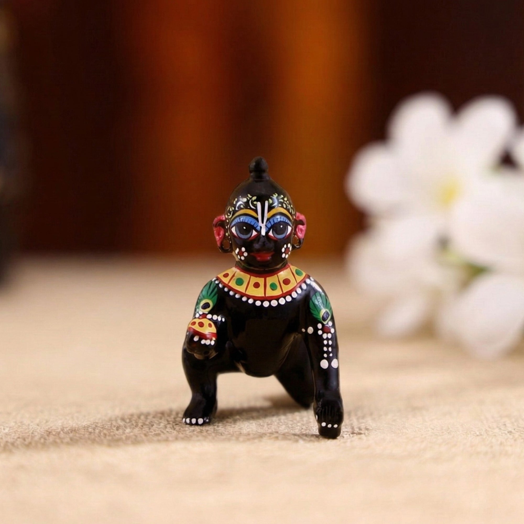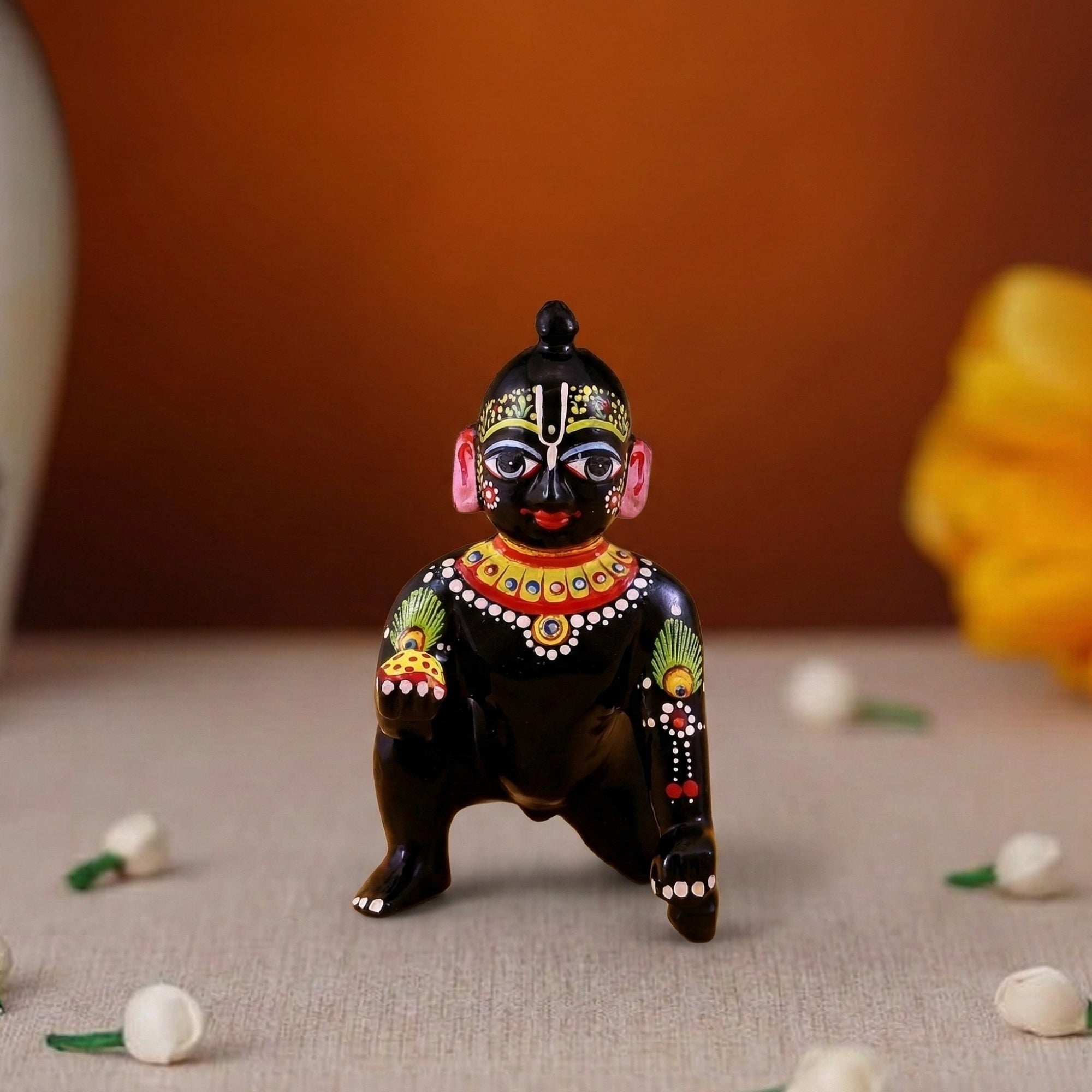 Laddu Gopal Brass Idol - Hand Painted Unique Design Black Colour Laddoo Gopal