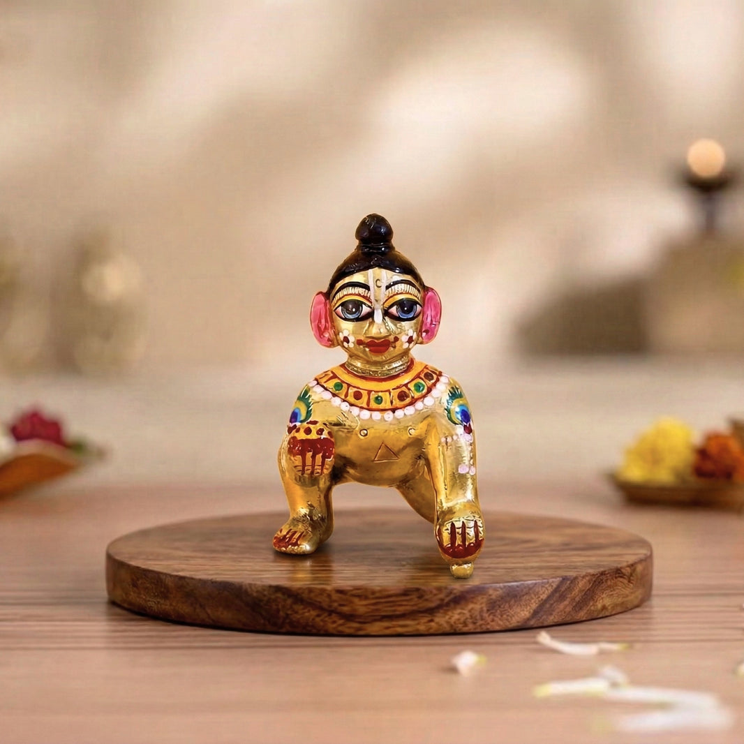 Laddu Gopal Ashtadhatu Idol - Colourful Hand Painted Chote (Small) Kanha Ji, Mathura