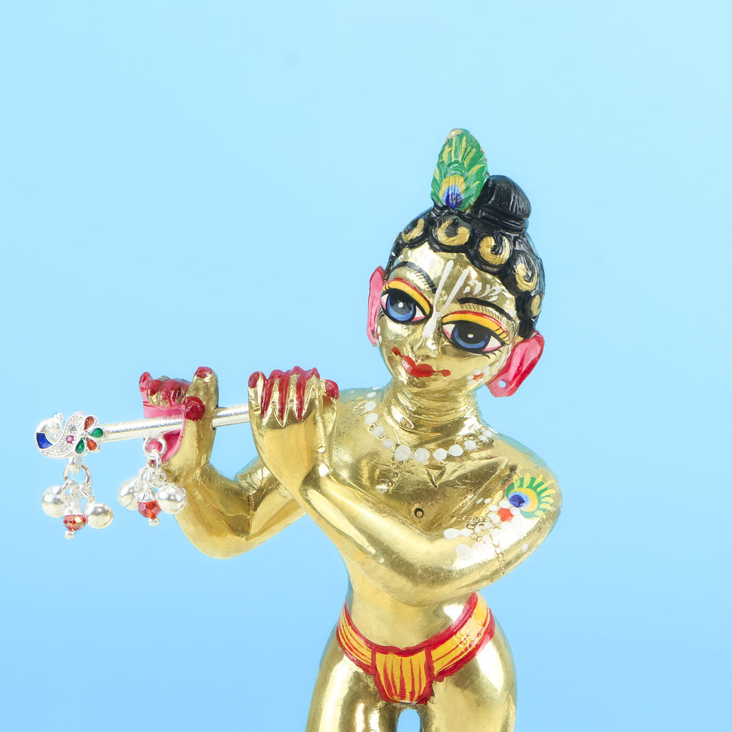 Bansuri (Flute): Symbolizing Krishna’s divine melody, crafted with precision.