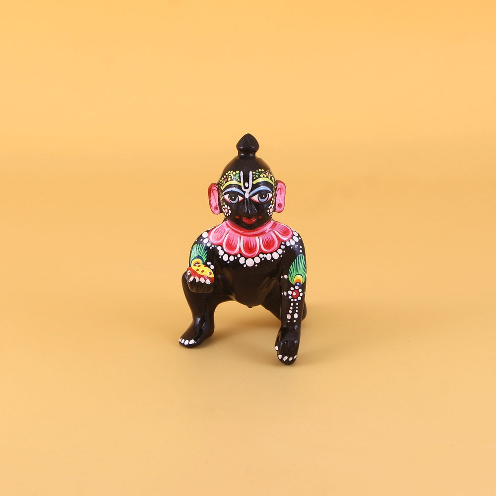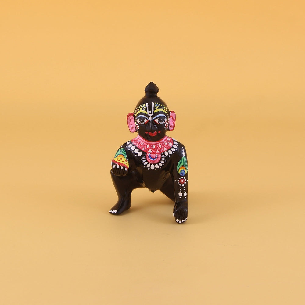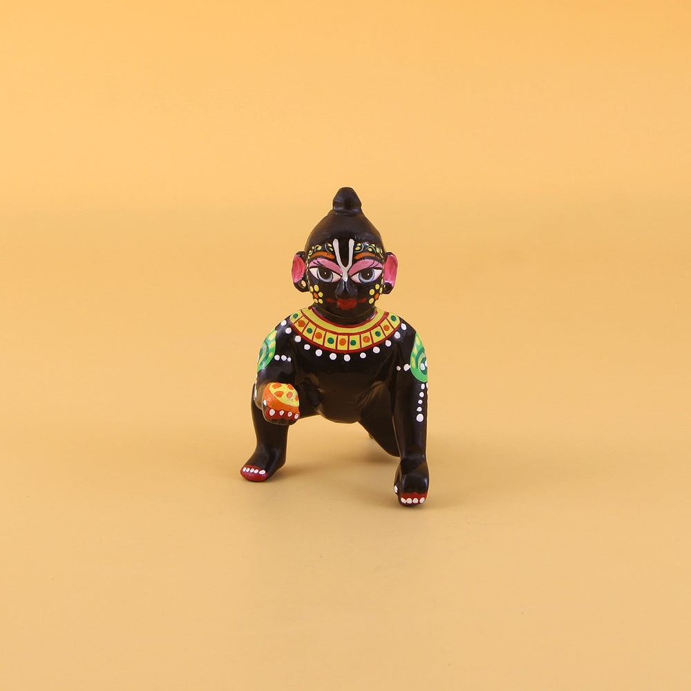 Laddu Gopal Brass Idol - Hand Painted Unique Design Black Colour Laddoo Gopal