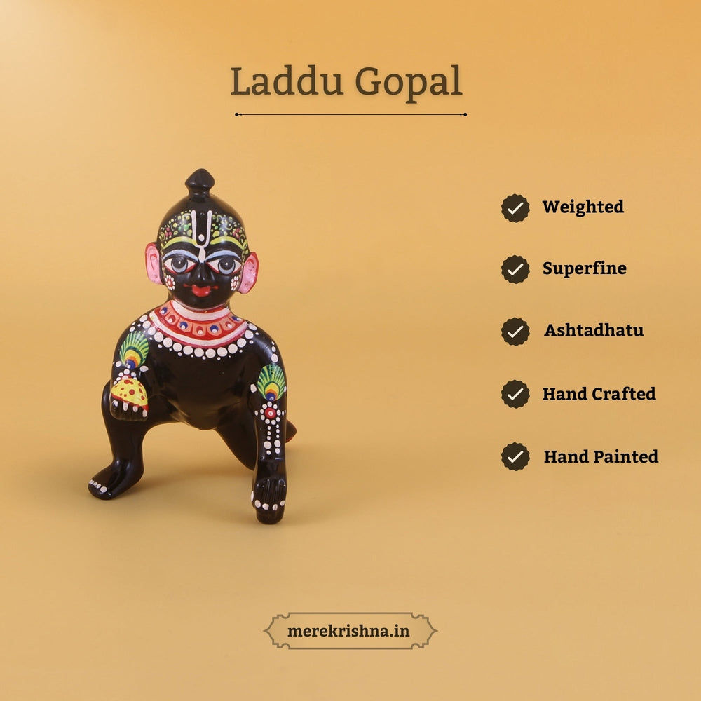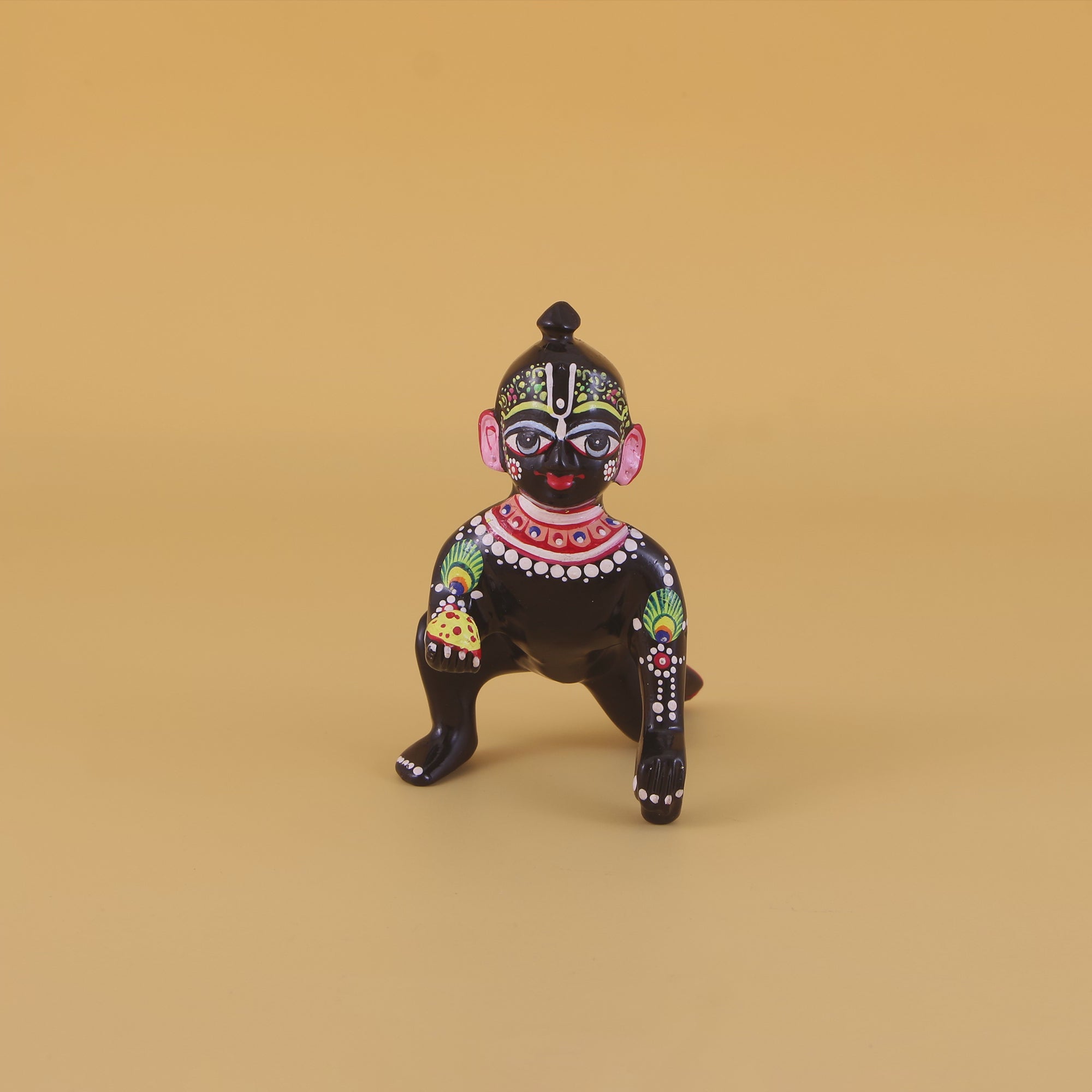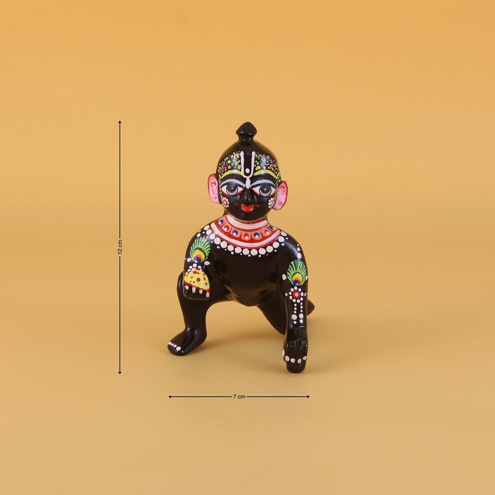 Black Laddu Gopal Brass Idol - Decorative Shringar Bal Krishna