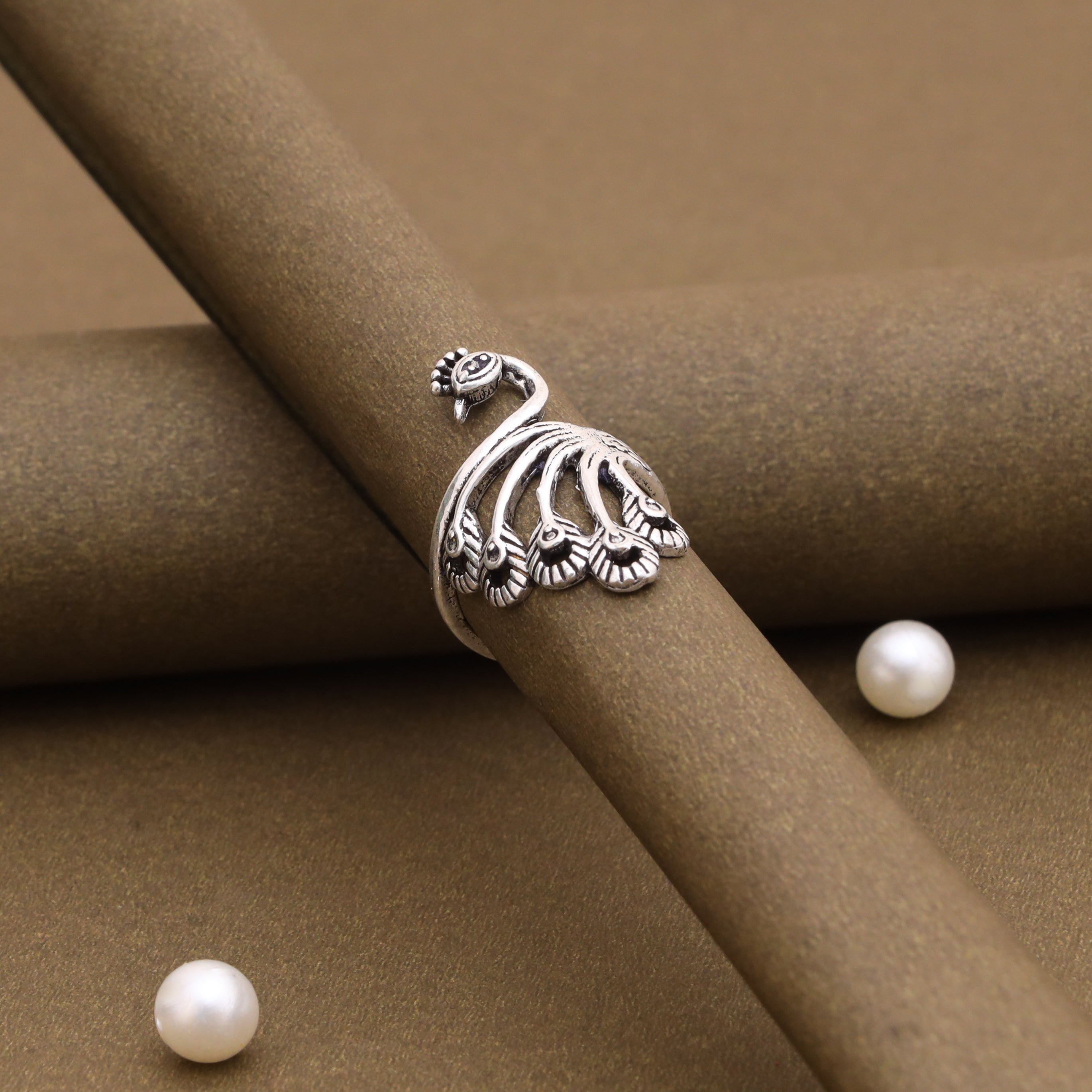 Peacock Ring, Handmade, Oxidized Metal, Intricate Design