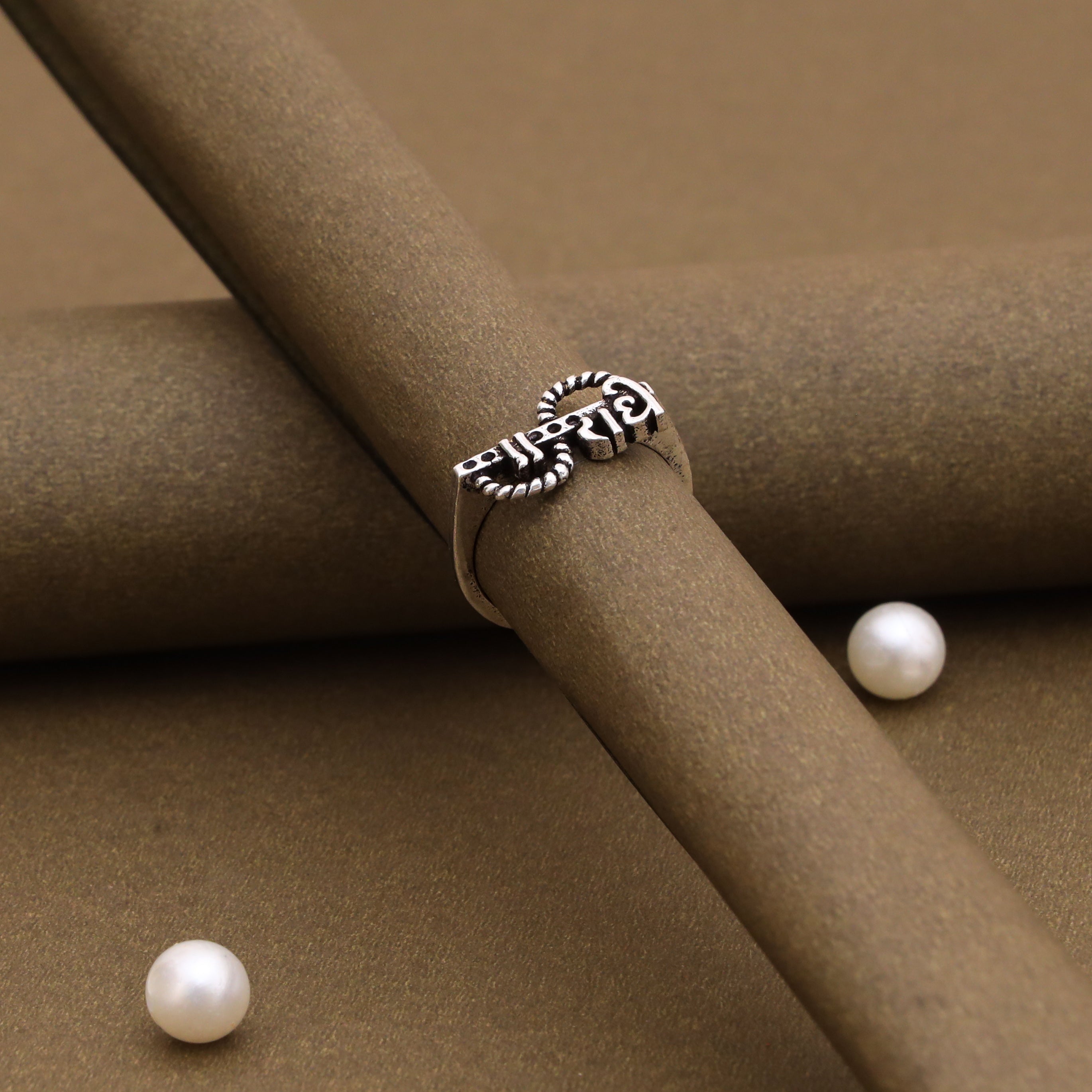 Radhe Mantra Oxidized Metal Ring, Intricate Design