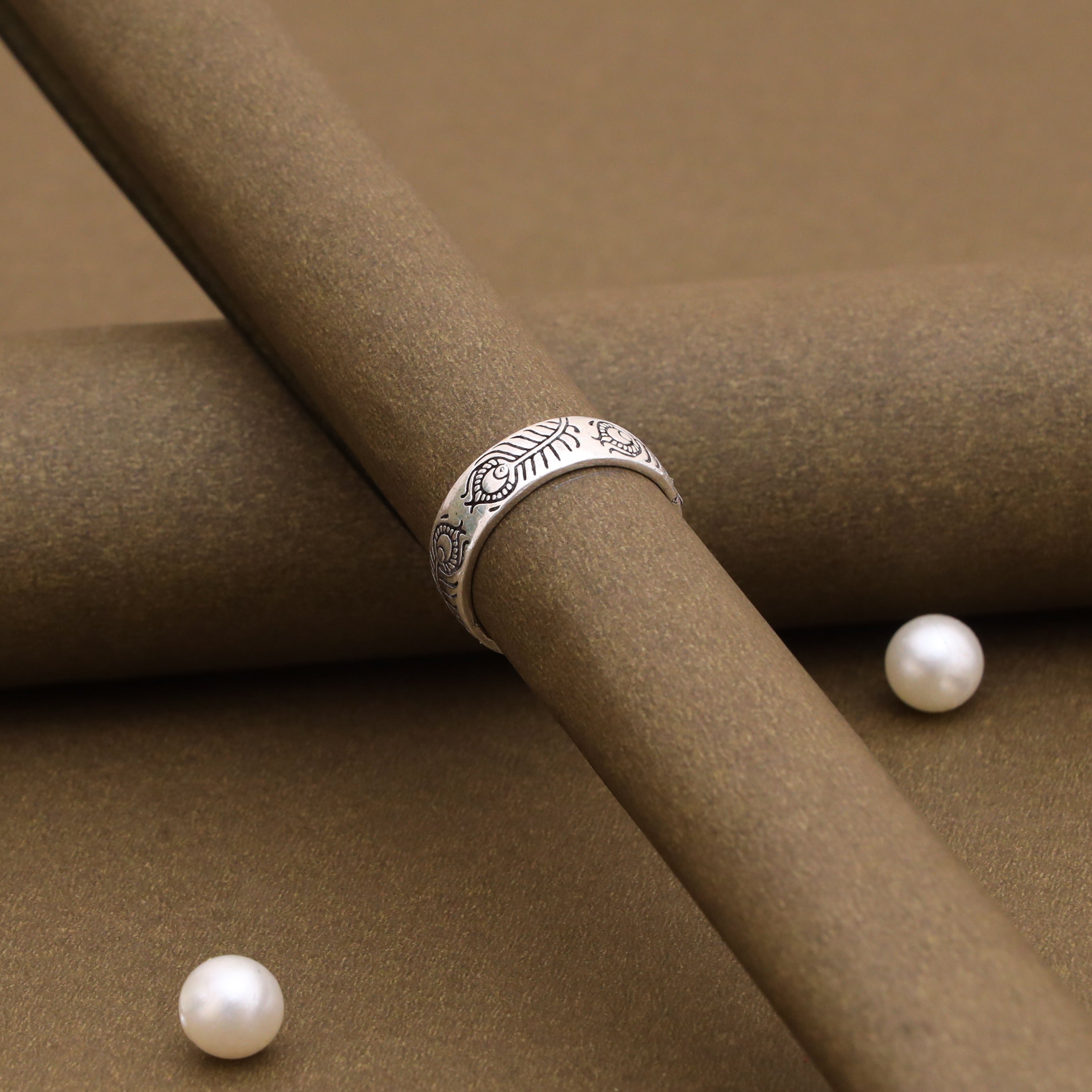 Leaf Design Ring, Handmade, Oxidized Metal, Intricate Design