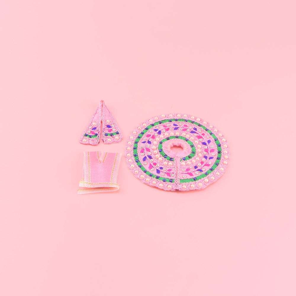 Laddu Gopal Pink Dress - Thread Work with Patka