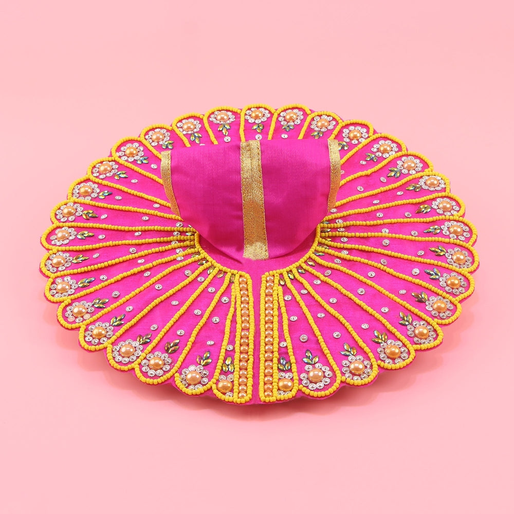 Laddu Gopal Pink Dress - Handcrafted Thread Work with Patka