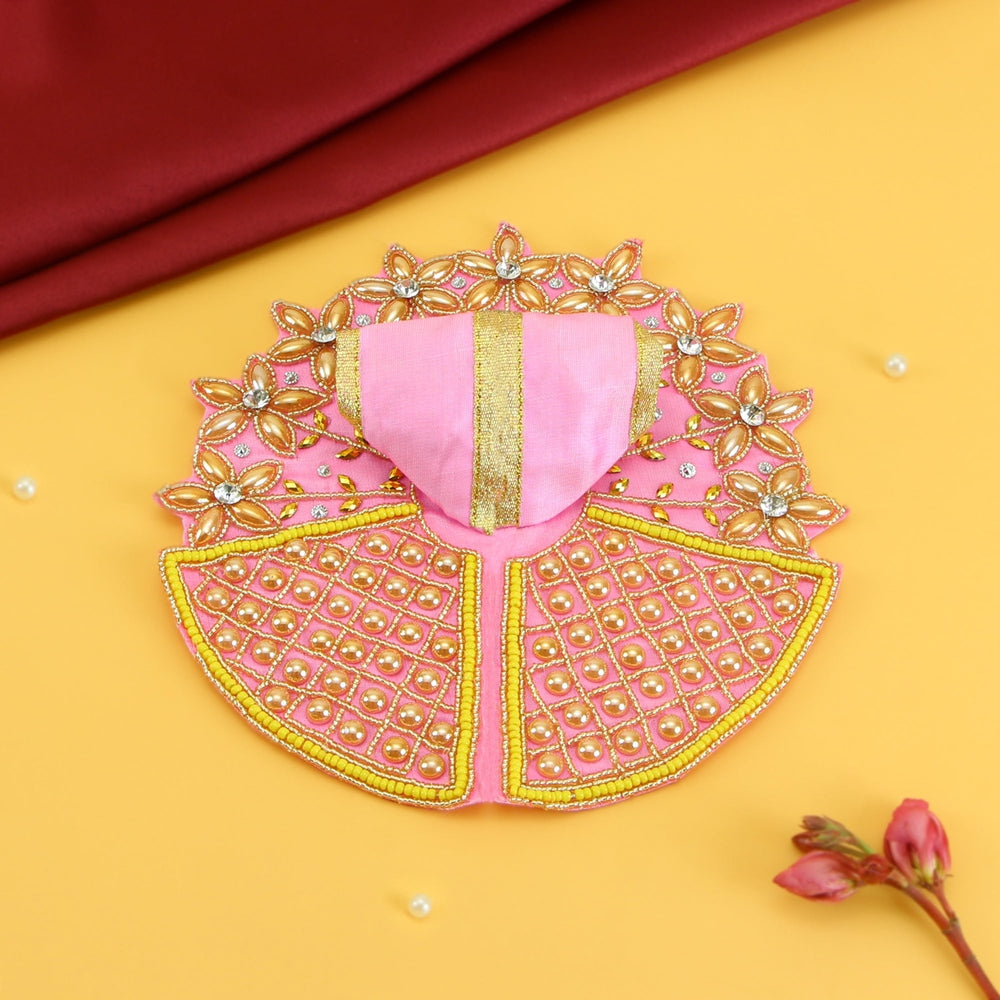 Laddu Gopal Pink Dress - Handcrafted Beads Work, Heavy Poshak