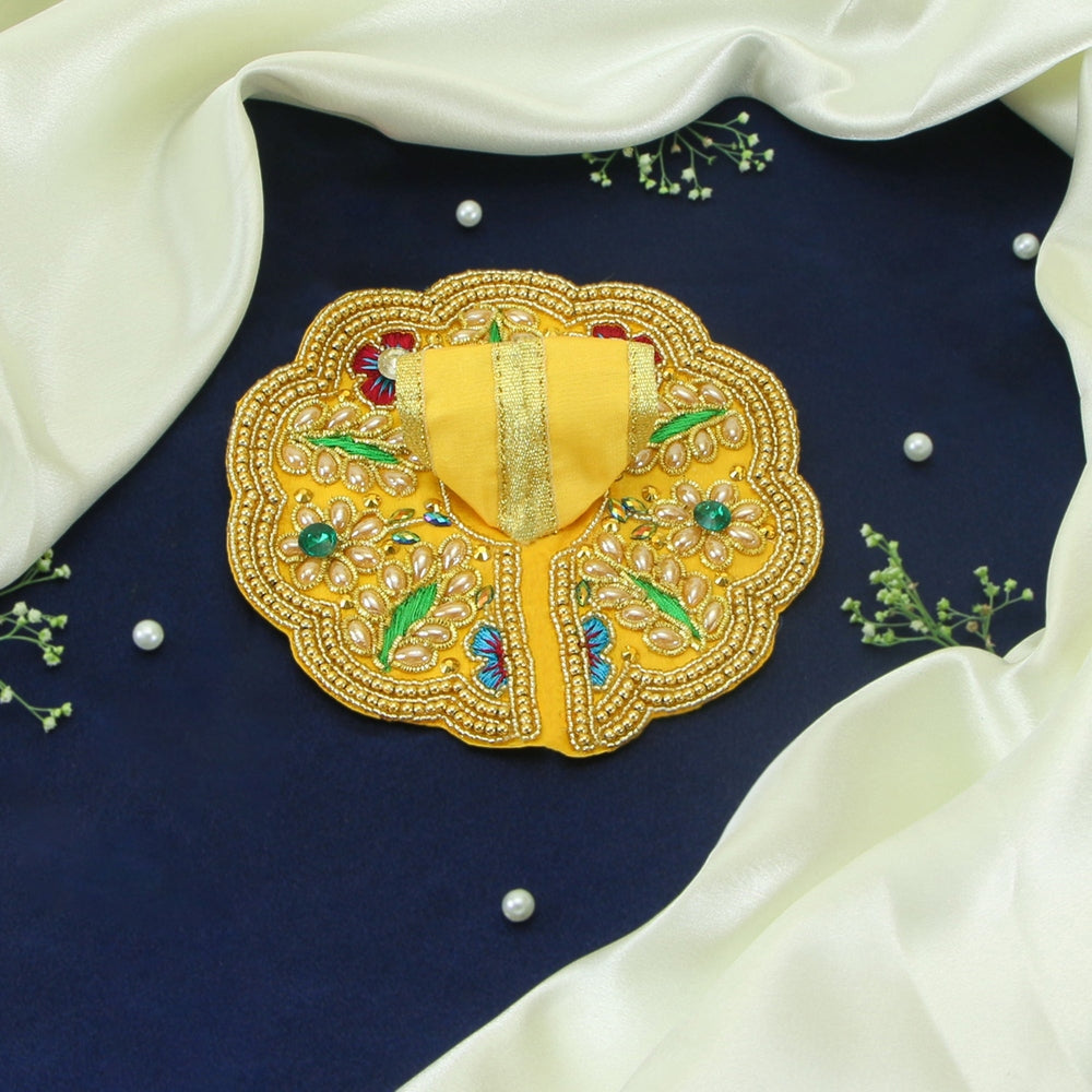 Laddu Gopal Yellow Dress - Handcrafted, Floral Work Peacock Design