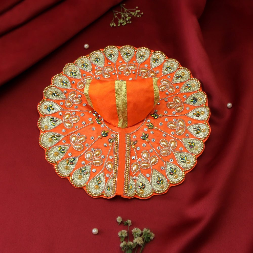 Laddu Gopal Orange Dress - Handcrafted, Peacock Design