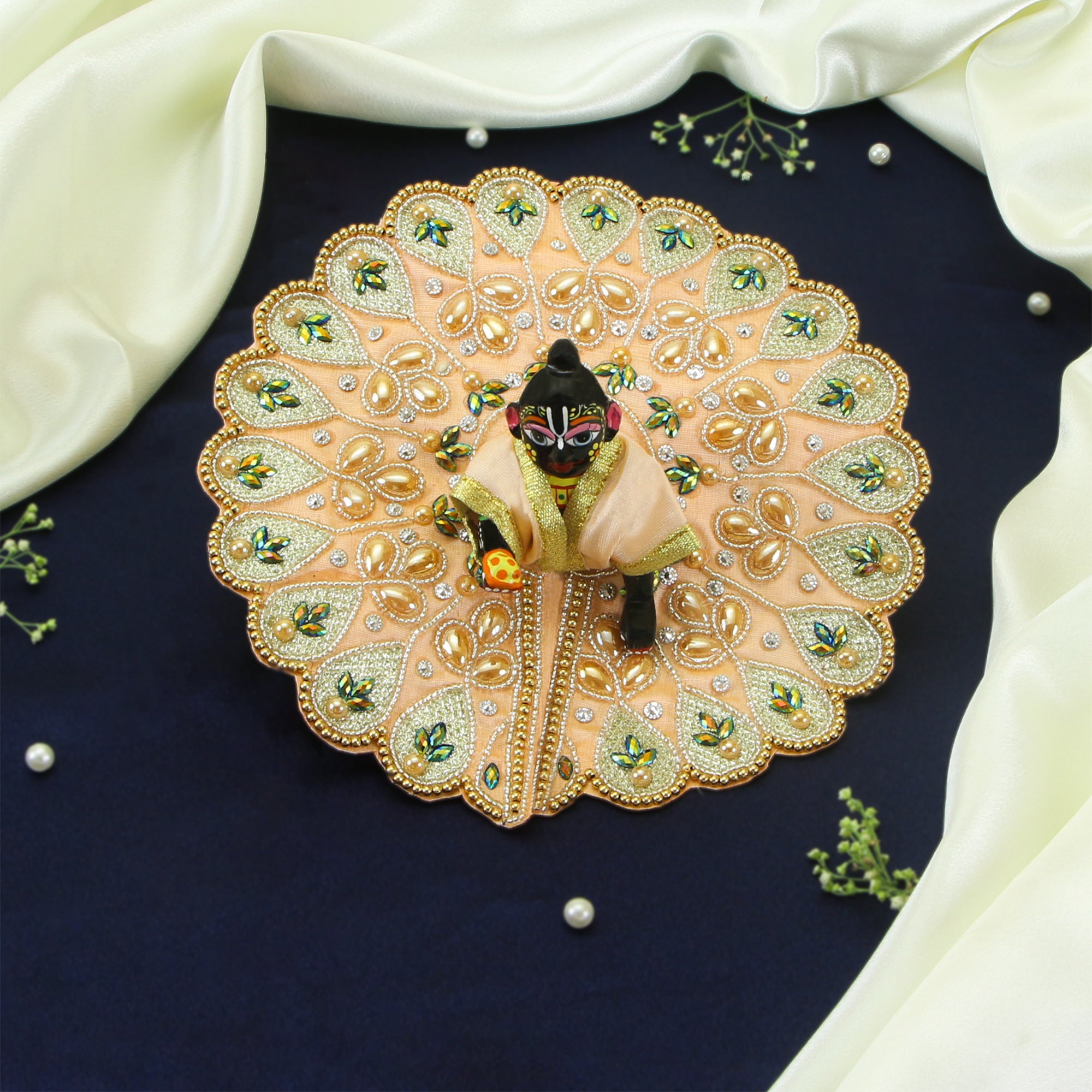 Laddu Gopal Peach Dress - Handcrafted, Peacock Design, Size 5