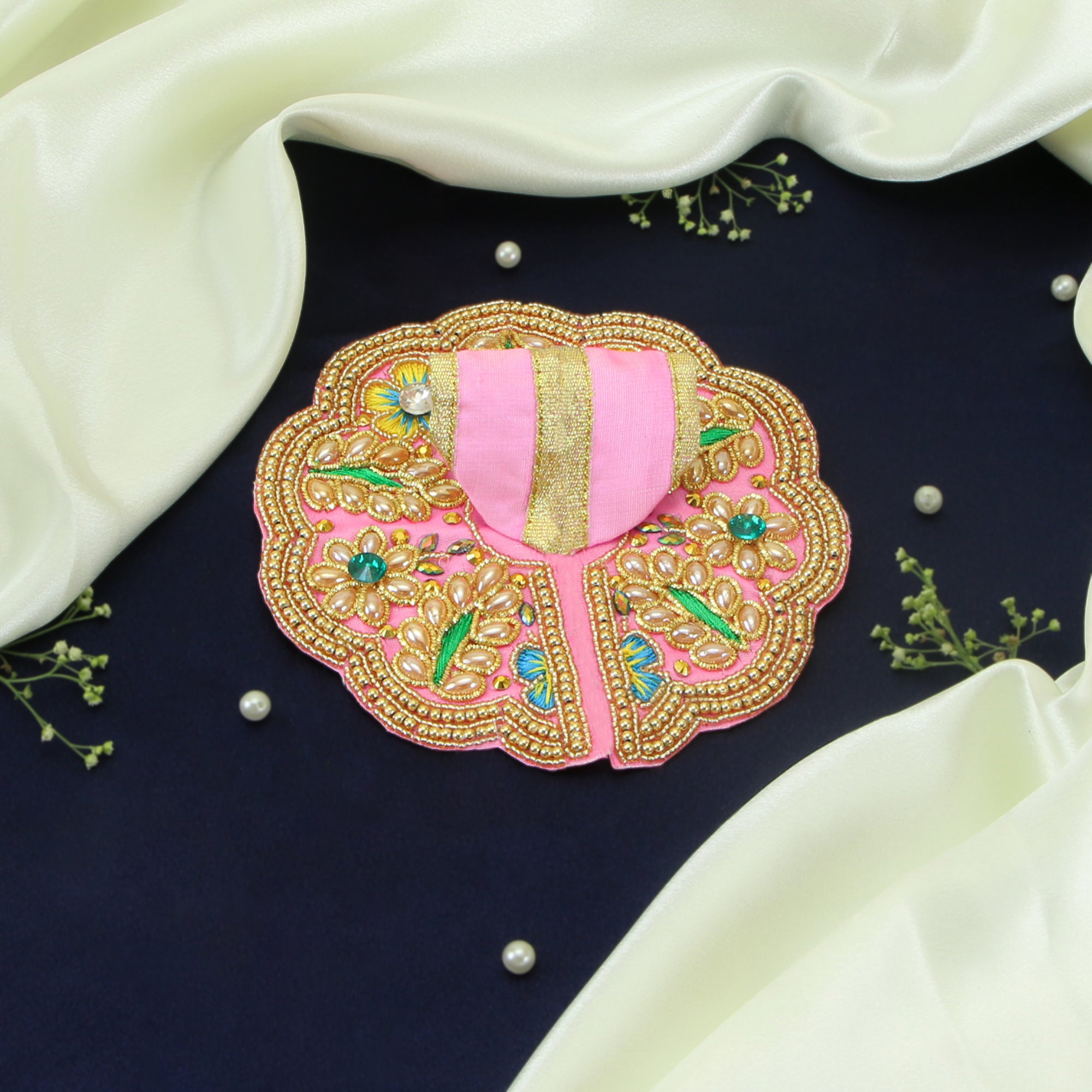 Laddu Gopal Pink Dress - Handcrafted, Peacock Design, Size 5