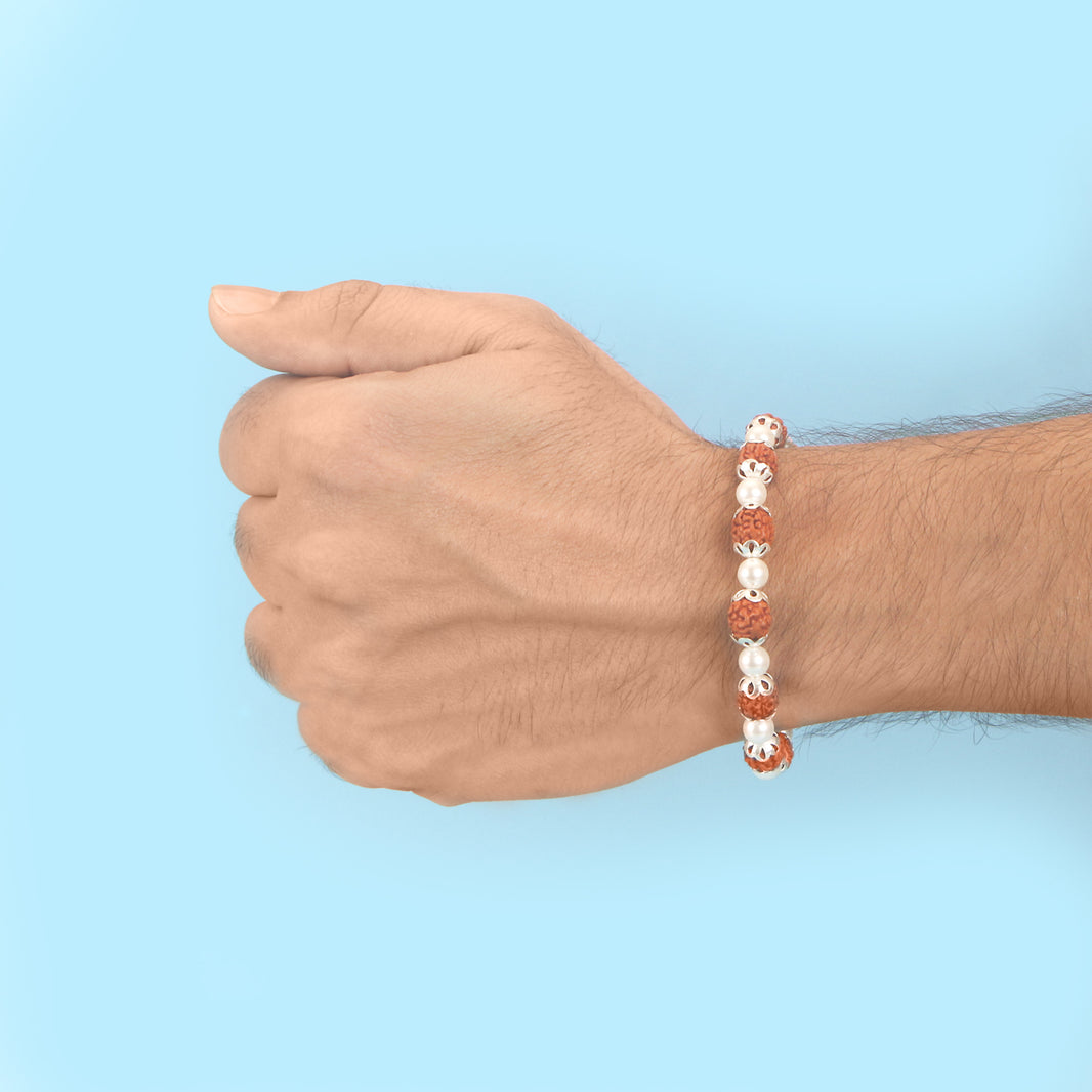 Rudraksha and White Pearl Bracelet – With Silver Capping