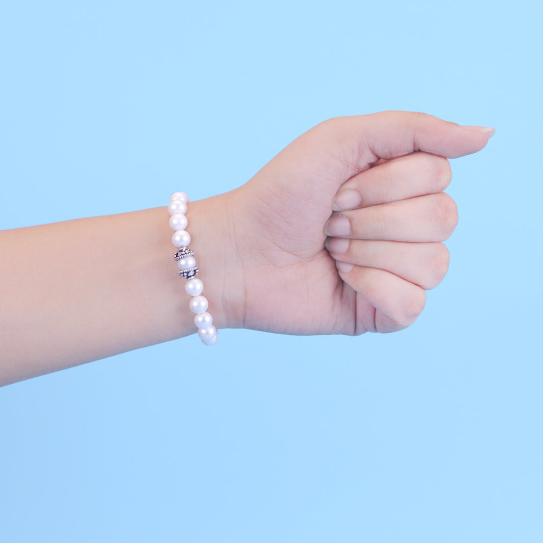 White Pearl Bracelet – Silver Capped Beads for a Premium Look