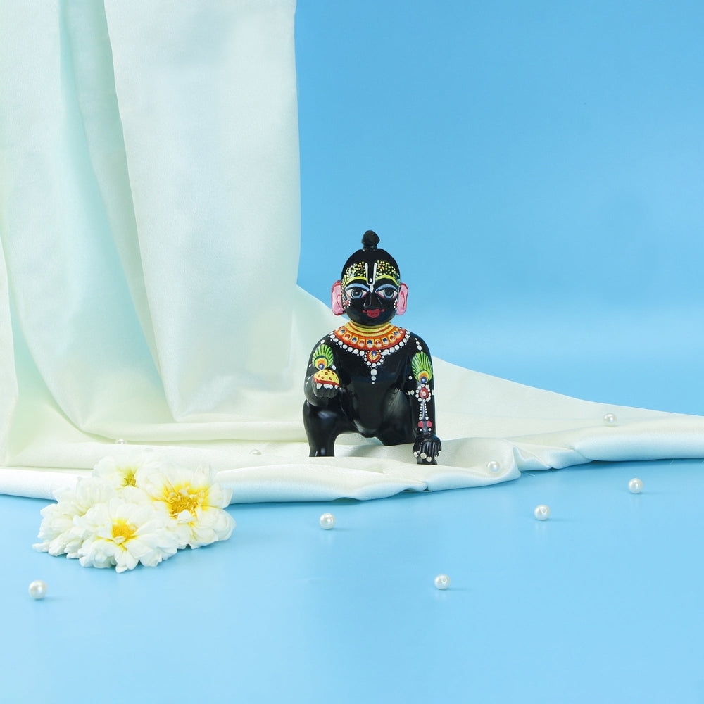 Black Brass Laddu Gopal Idol - Heavy Weighted Thakur Ji with Attractive Eyes