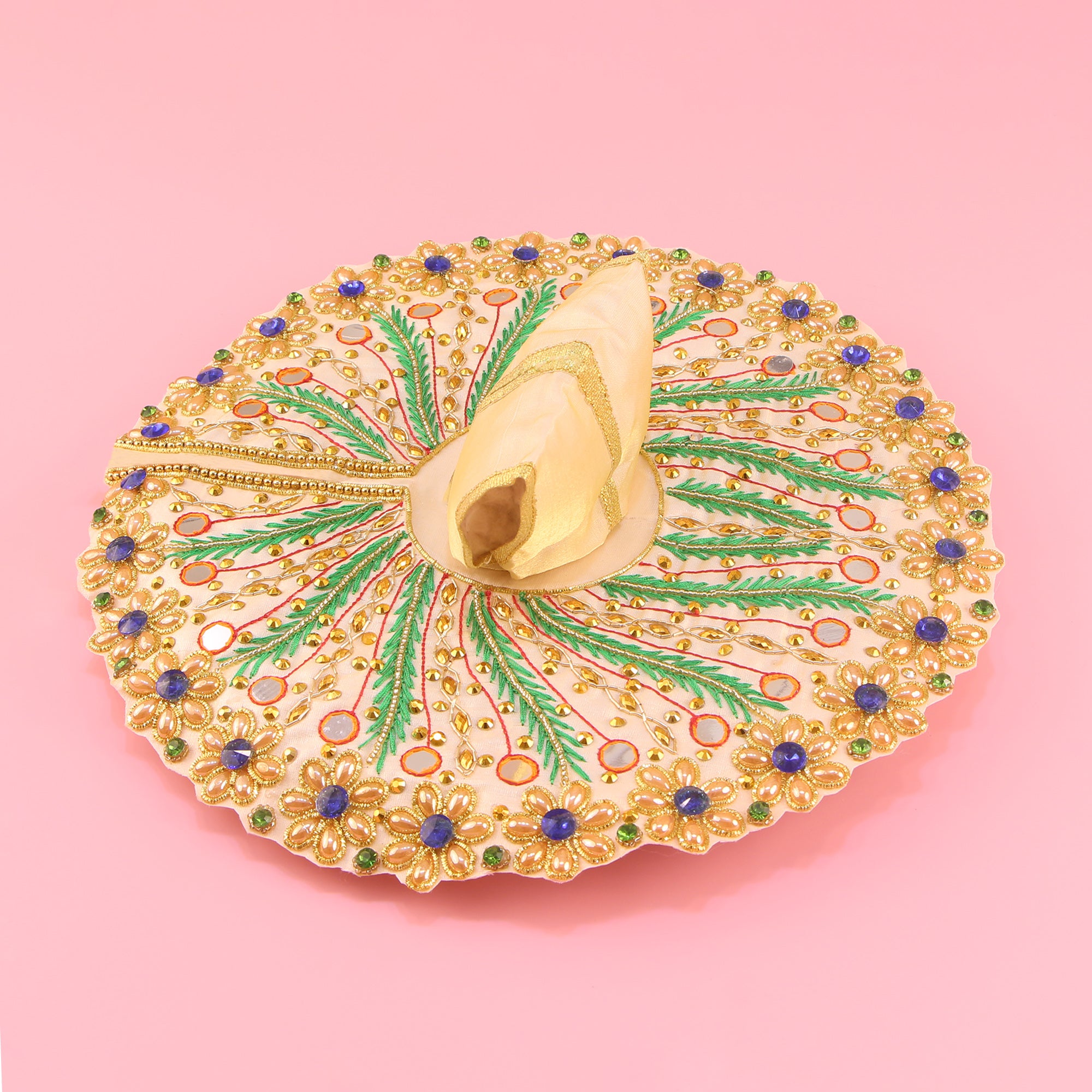 Laddu Gopal Cream Dress - Handcrafted, Peacock Design, Mirror Work, Size 5
