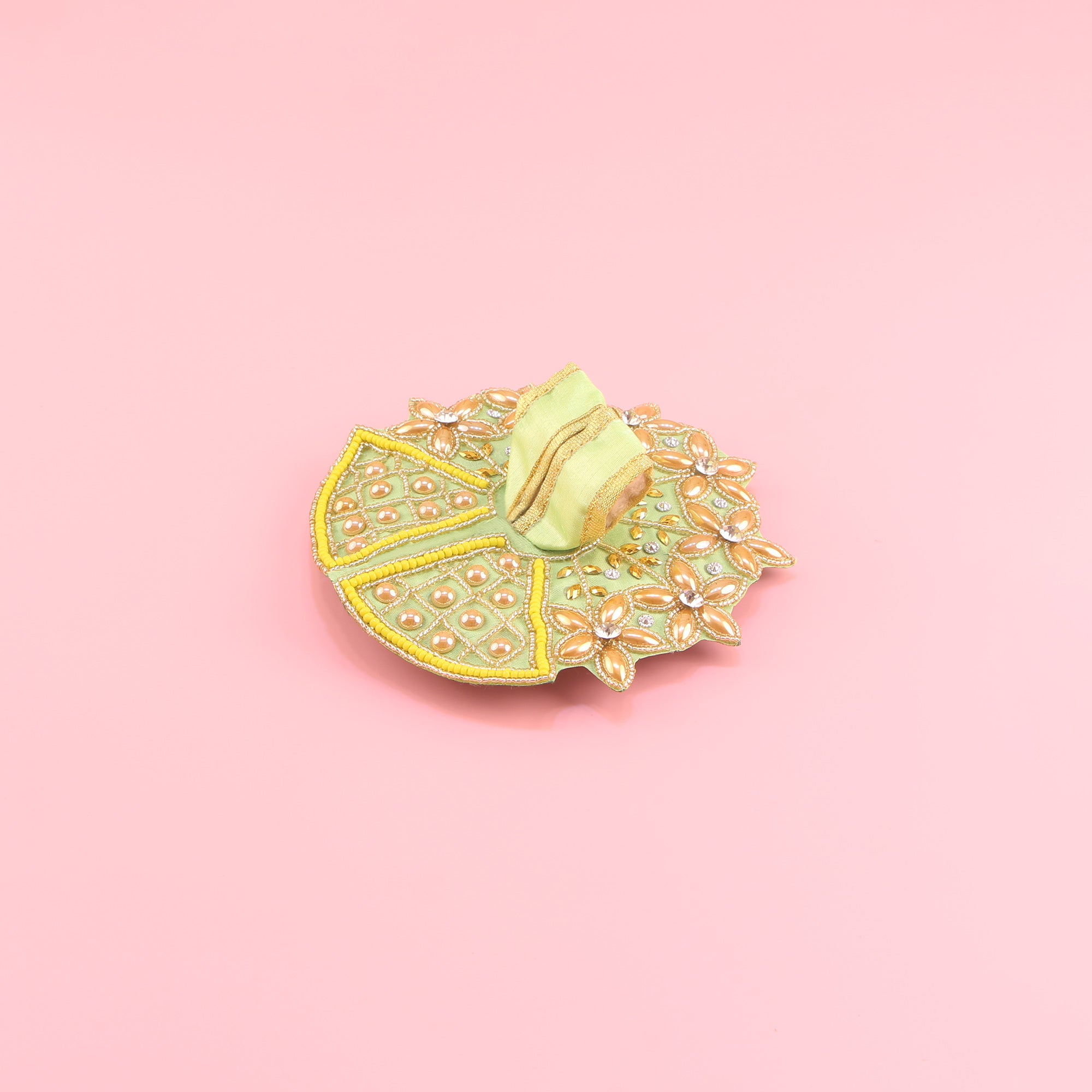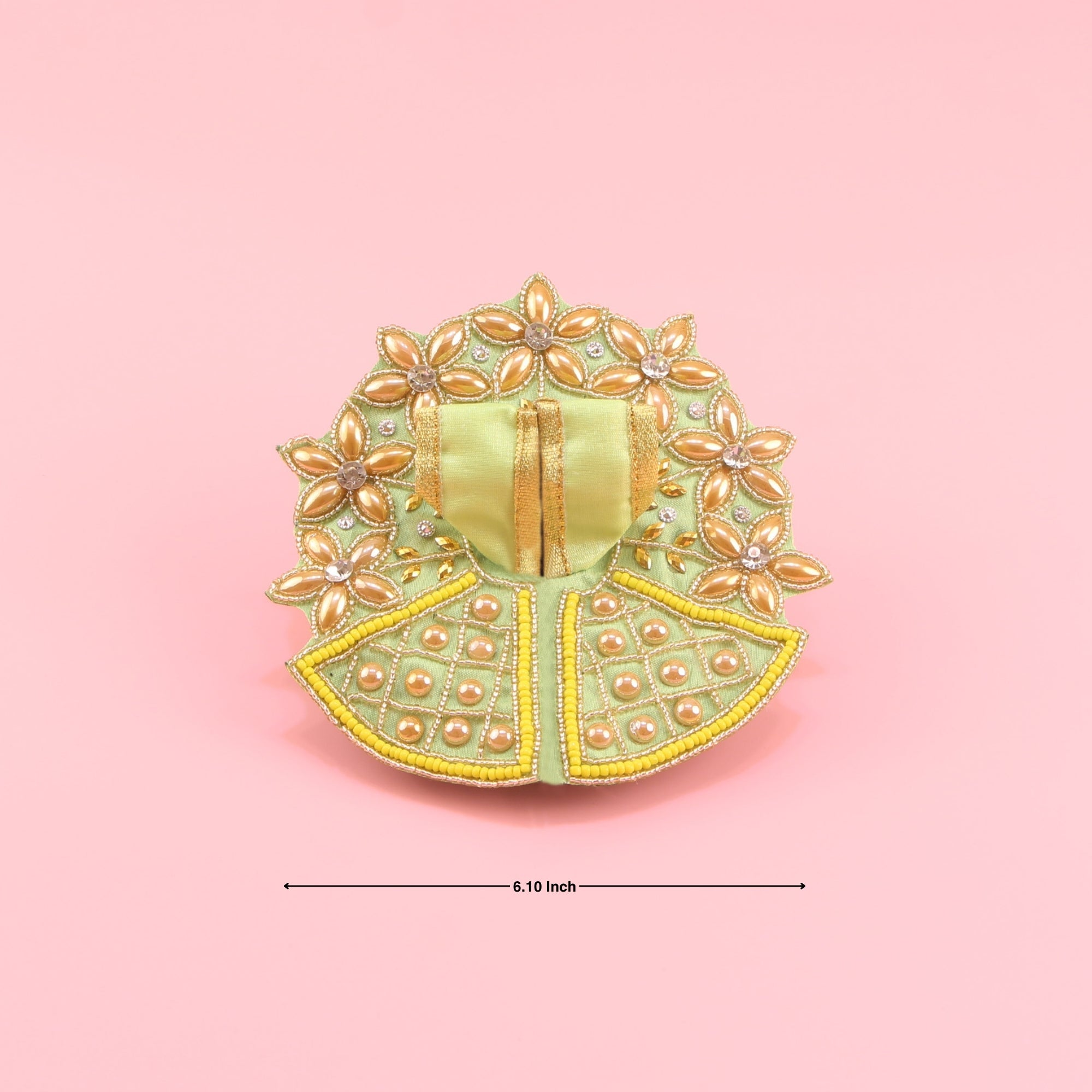 Laddu Gopal Green Dress - Handcrafted, Golden Floral Design, Size 2