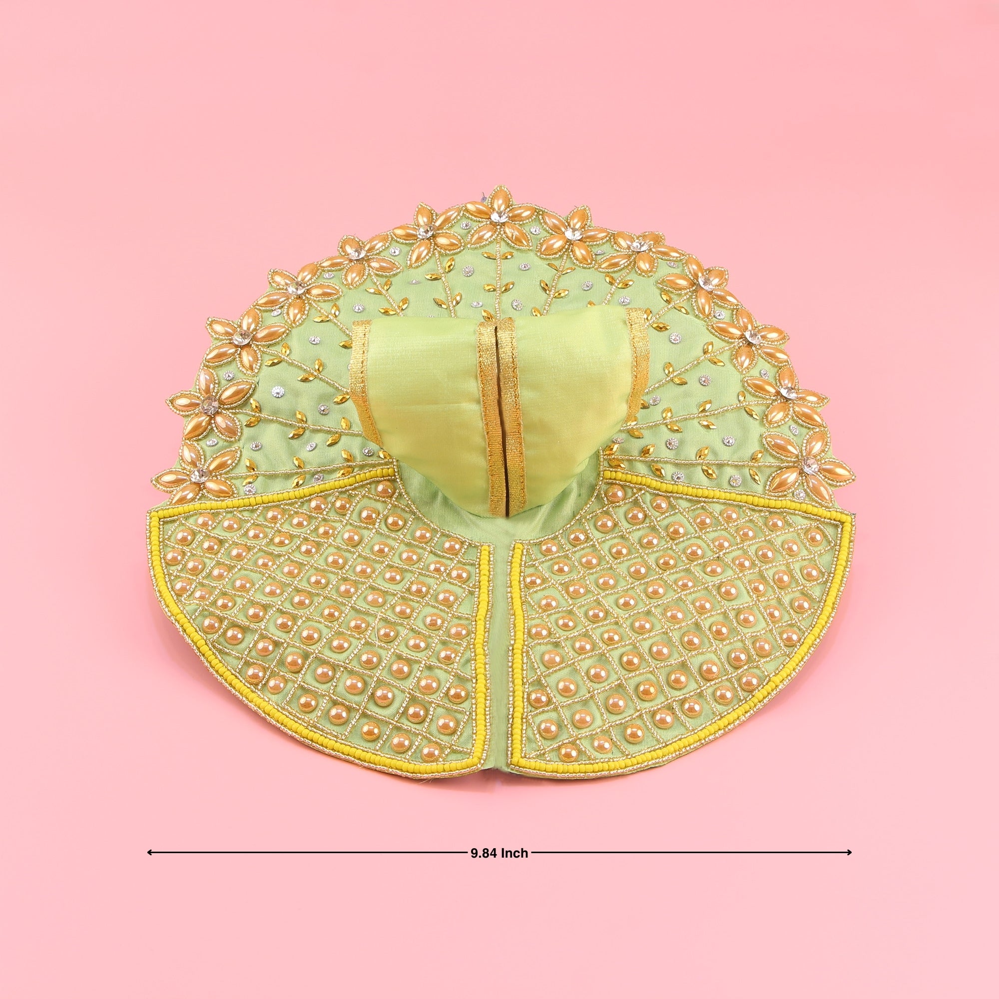 Laddu Gopal Green Dress - Handcrafted, Golden Floral Design, Size 5