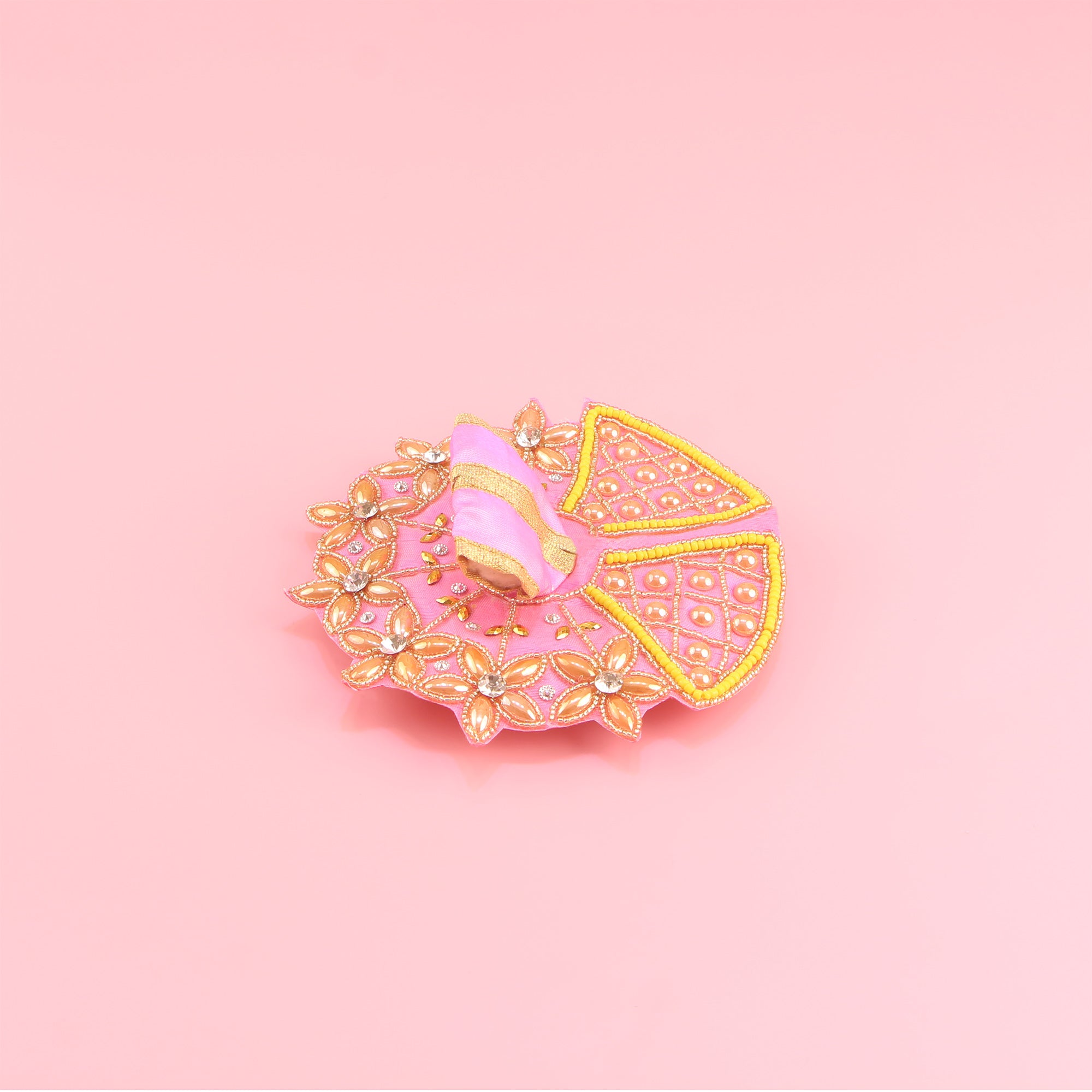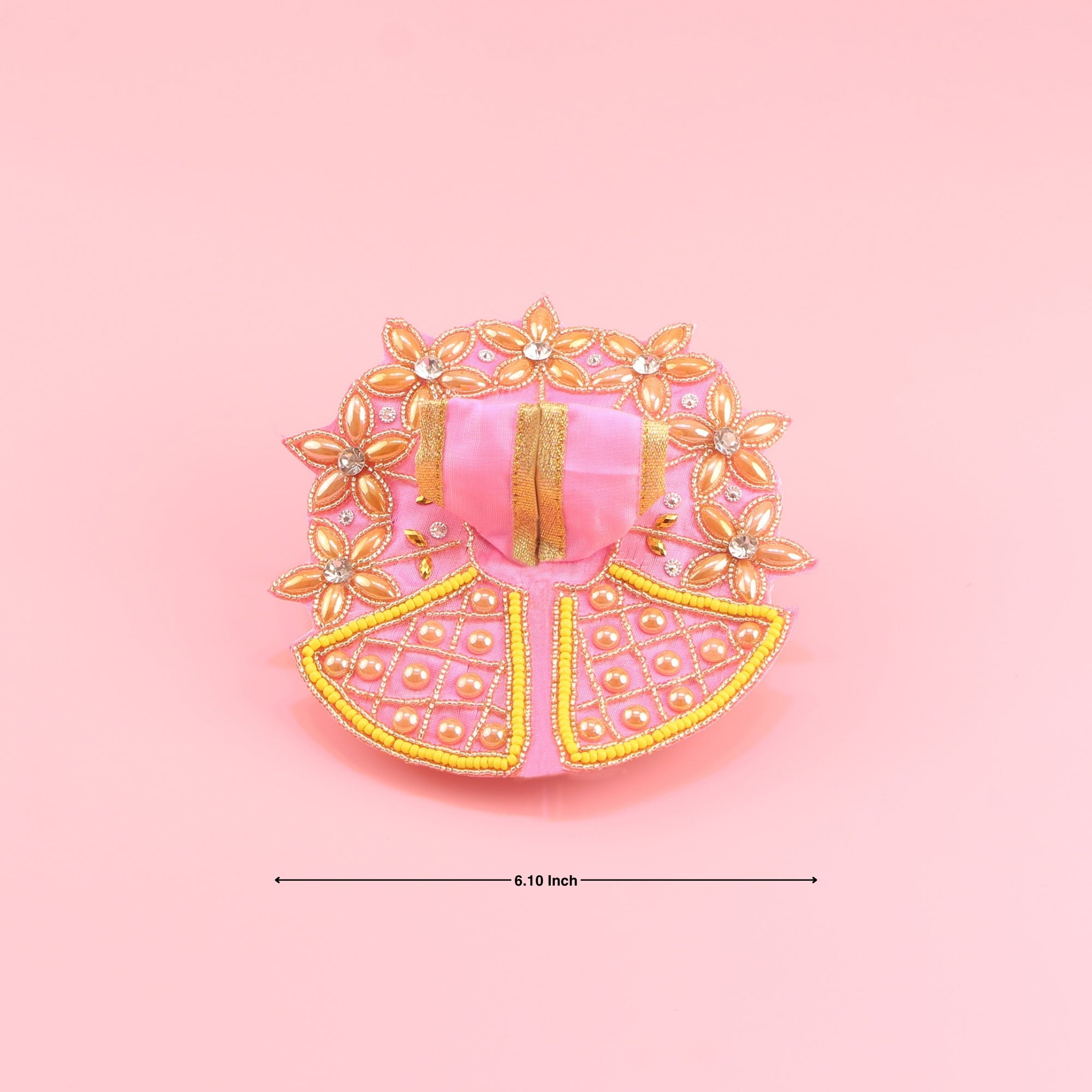 Laddu Gopal Pink Dress - Handcrafted, Golden Floral, Size 2