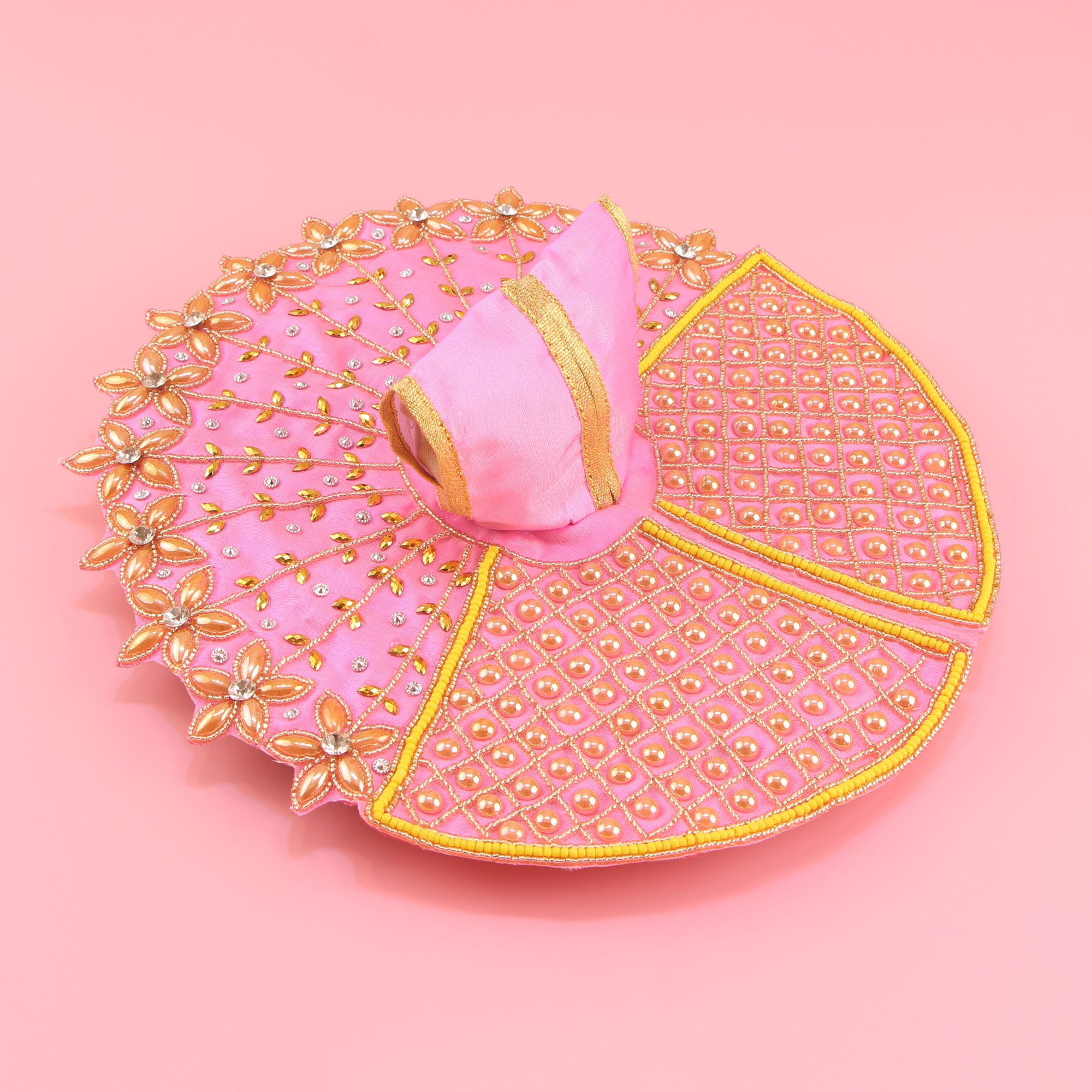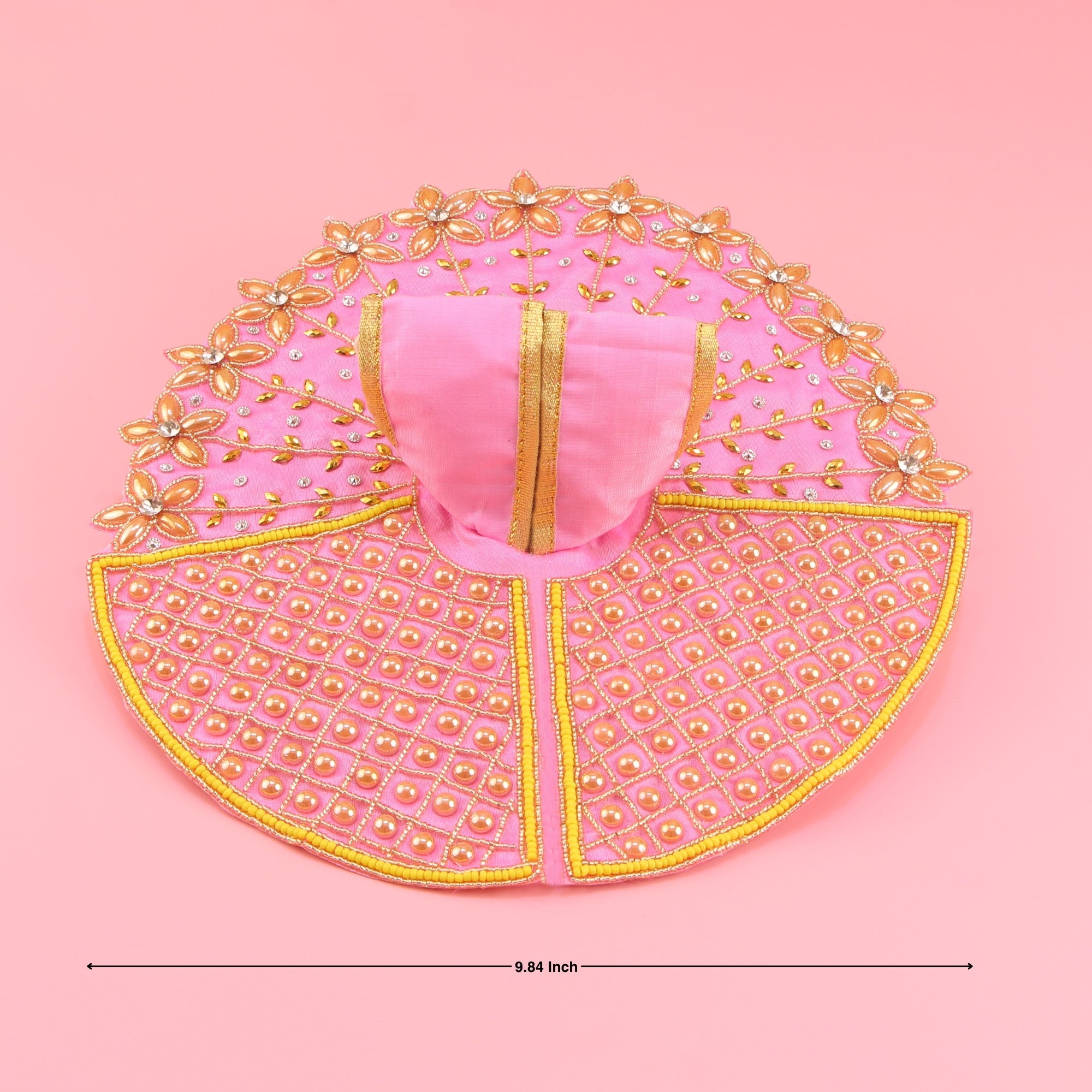 Laddu Gopal Pink Dress - Handcrafted, Golden Floral, Size 5