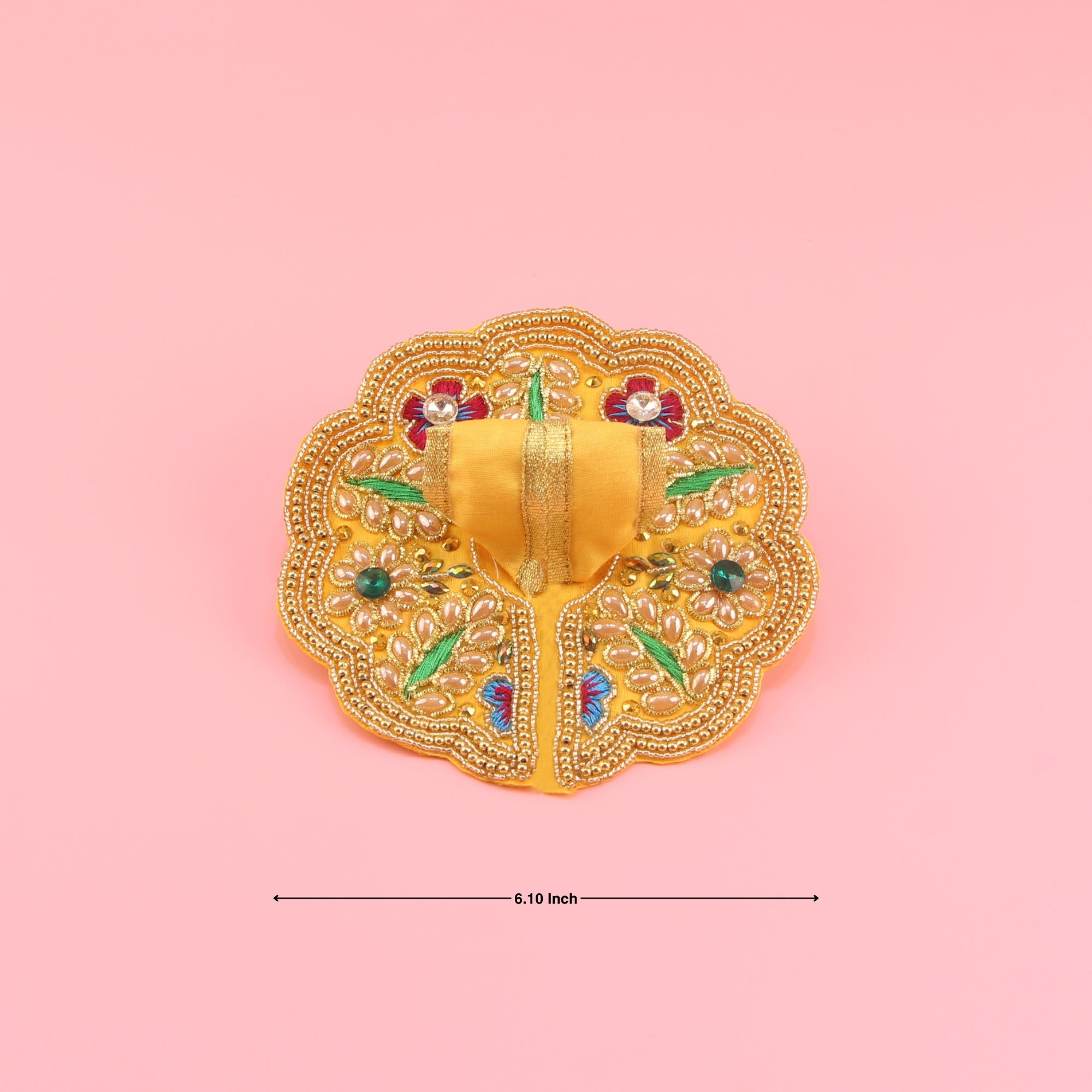 Laddu Gopal Yellow Dress - Handcrafted, Floral and Peacock Design, Size 2