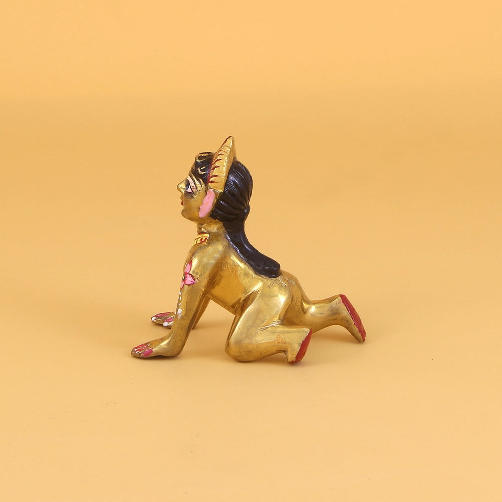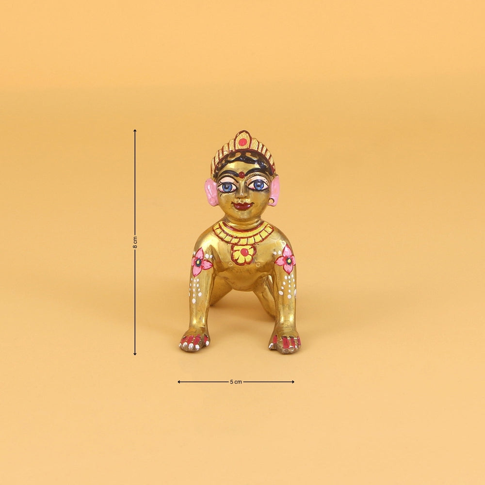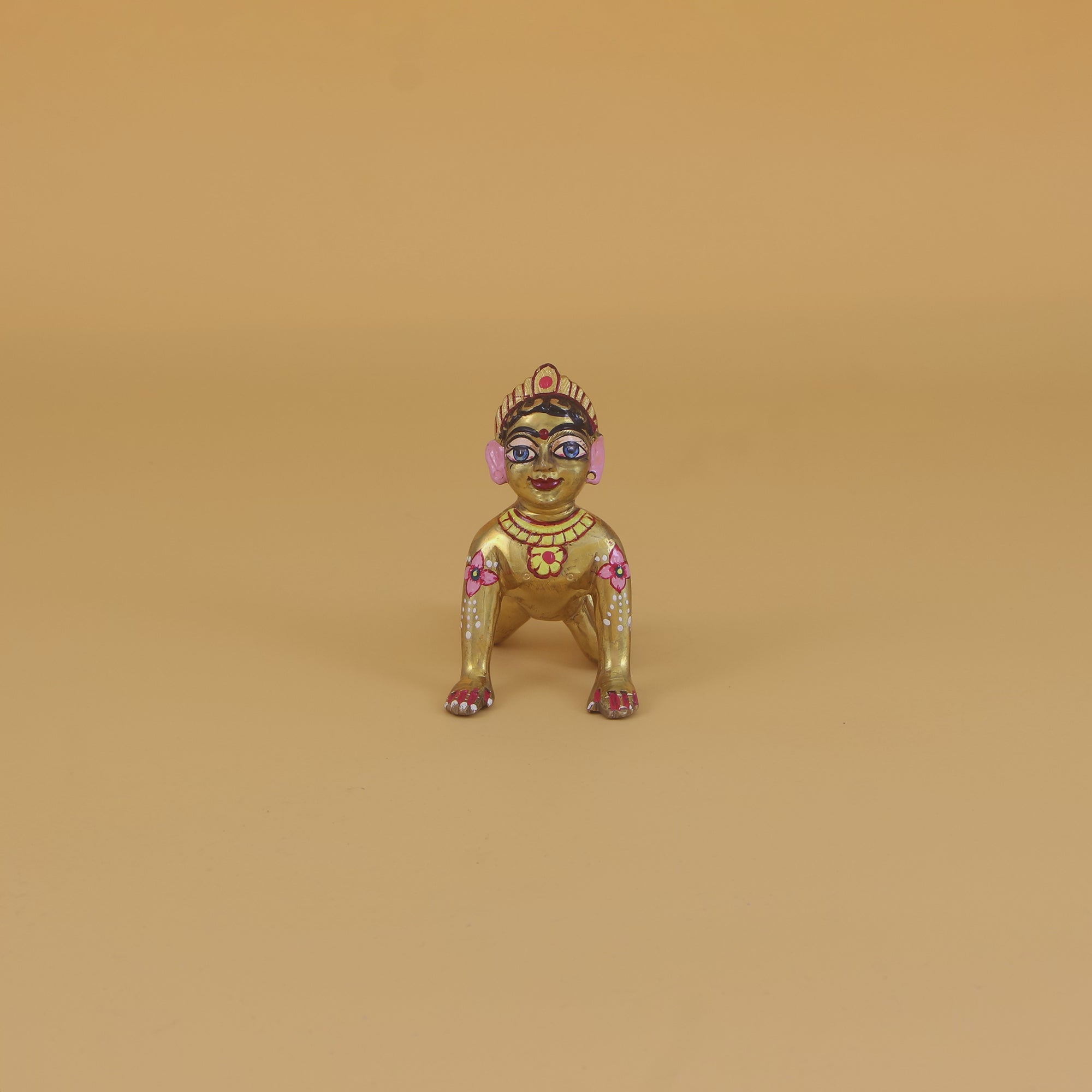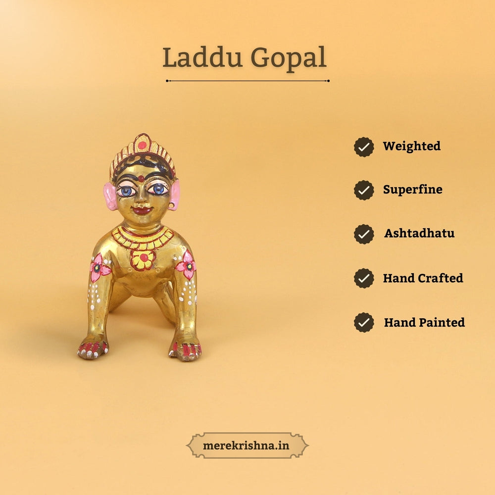 Discover this handmade Ashtadhatu Radha Rani idol from Mathura & Vrindavan, India. Ideal for Radha Ashtami, Janmashtami, gifting, or Radha Rani Seva. Traditional antique-style murti depicts Baby Radha Ji in glossy golden finish, radiating spiritual and cultural essence. A cherished religious treasure for your altar.
