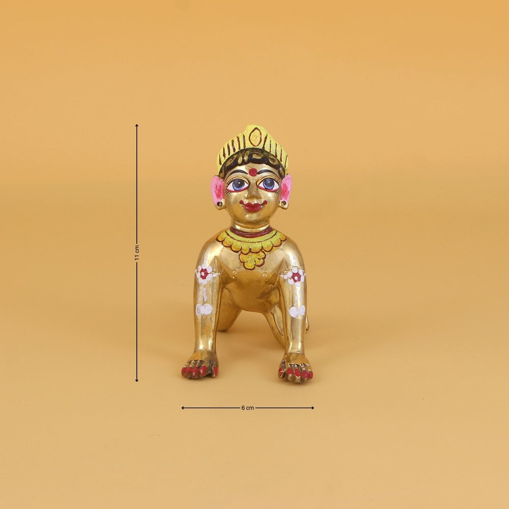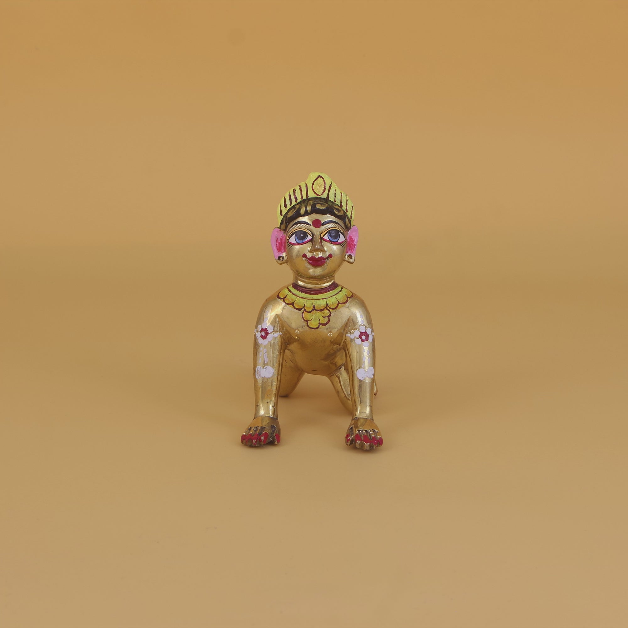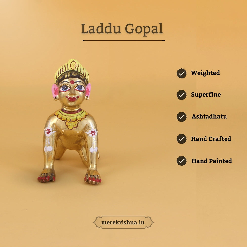 Discover this handmade Ashtadhatu Radha Rani idol from Mathura & Vrindavan, India. Ideal for Radha Ashtami, Janmashtami, gifting, or Radha Rani Seva. Traditional antique-style murti depicts Baby Radha Ji in glossy golden finish, radiating spiritual and cultural essence. A cherished religious treasure for your altar.